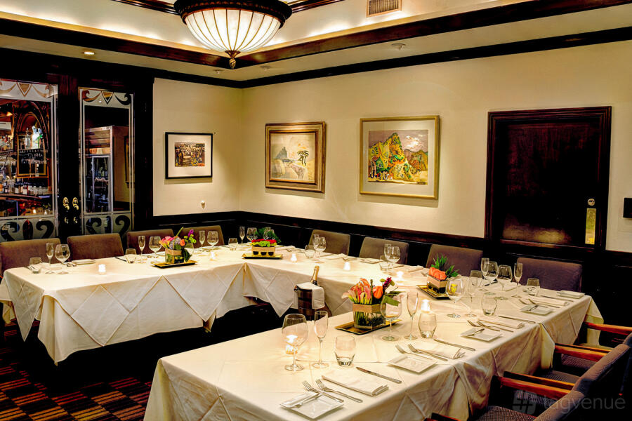 The brick walls are adorned with elegant paintings by Millard Sheets and mixologists prepare hand-crafted cocktails at the expansive bar, an original from 1920s Chicago.