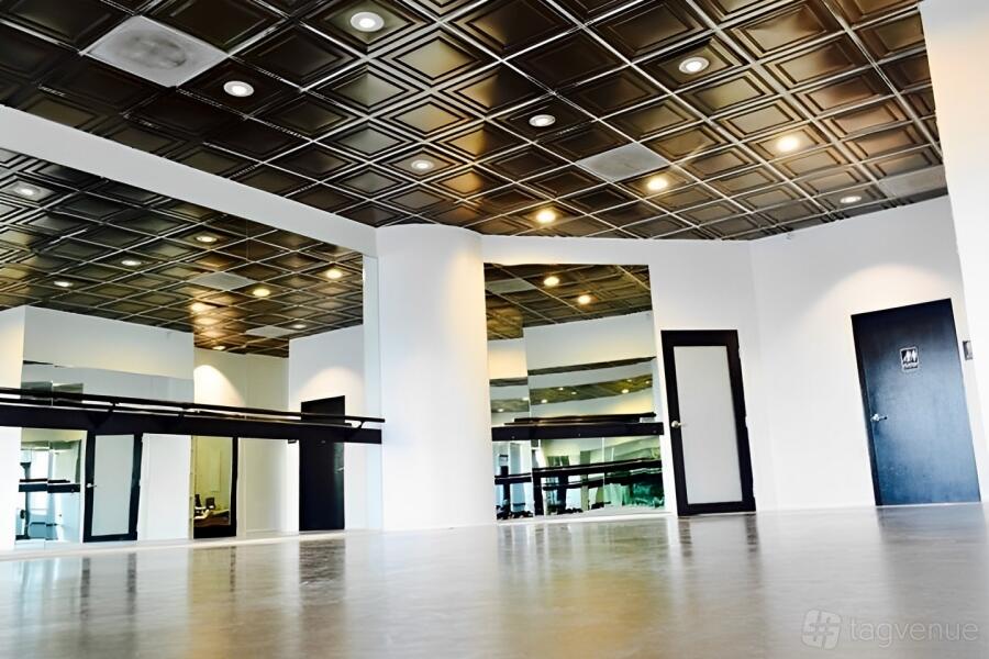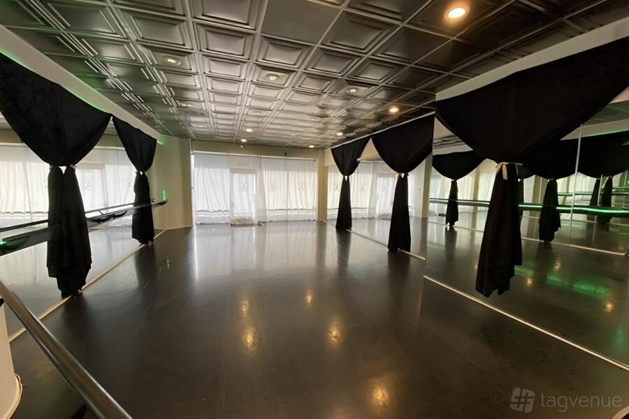 Besides being equipped with lights on a dimmer, this area can also be used for dance, including Dance rehersals, Hip Hop, High Heels class, Ballet and Tap, Table reads, Fittings, Workouts, Film Shoots, photo shoots.