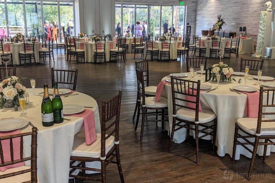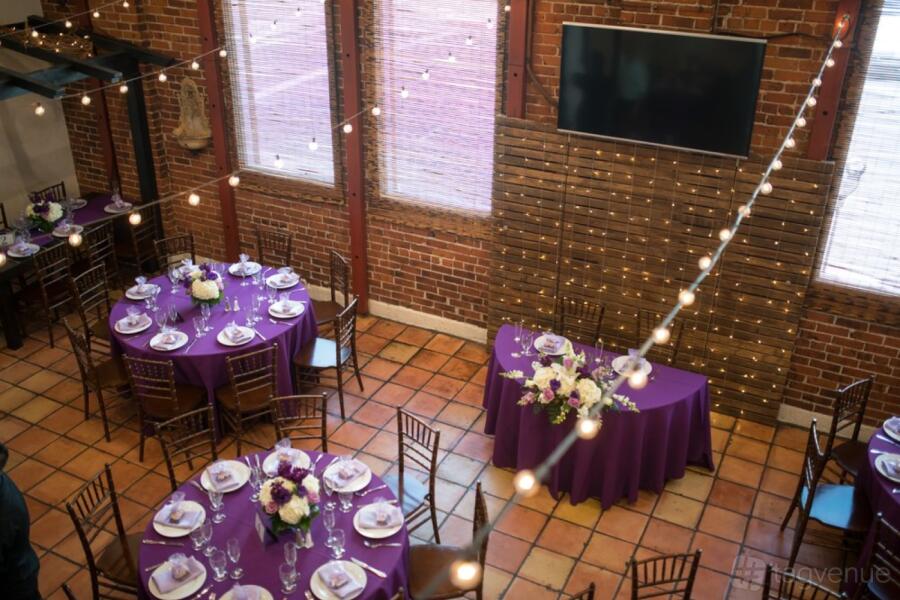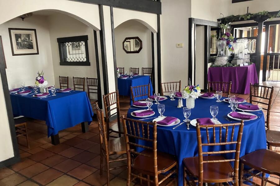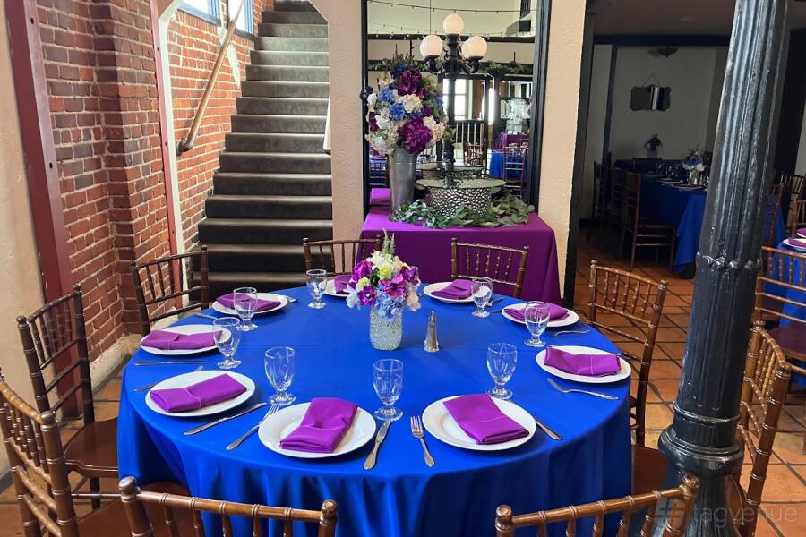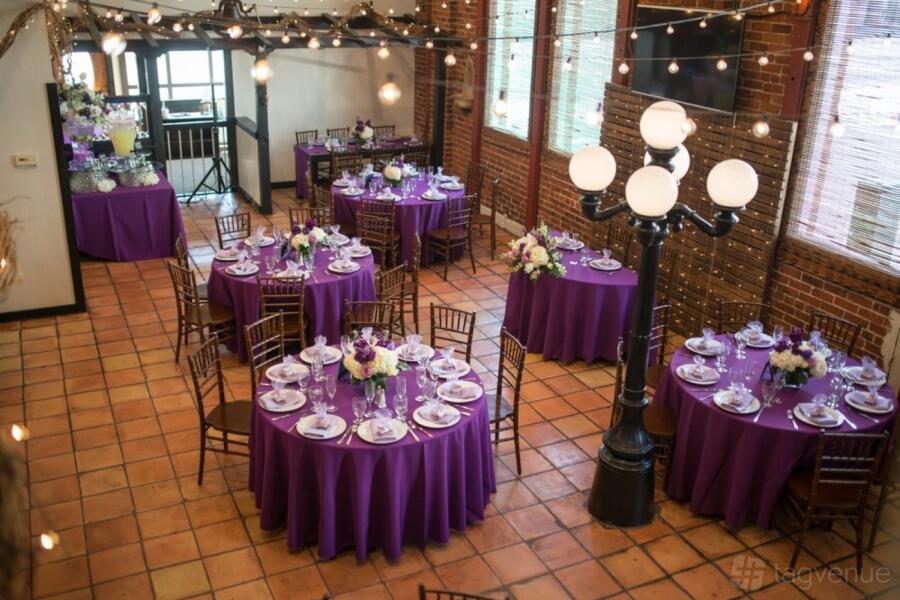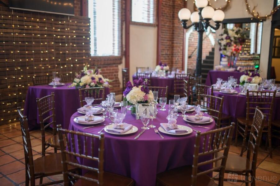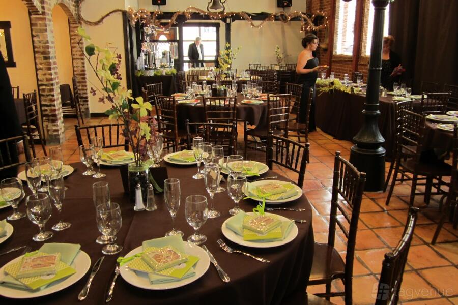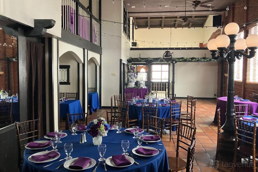 The Facility features a brick facade and terra cotta tile floors and a cozy entrance with stained-glass windows. The mezzanine overlooks an indoor area complete with an old-fashioned street lamp and an alcove for your musical needs. The antique oak bar and surrounding reception area are great place for your friends and family to join together and celebrate.