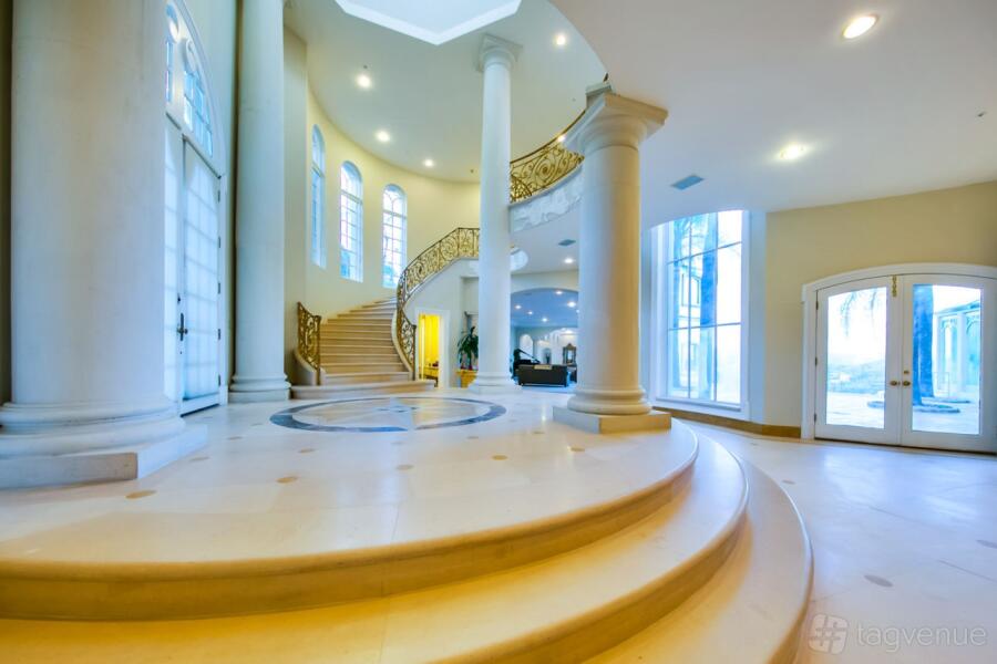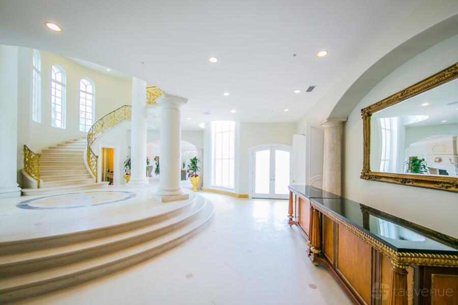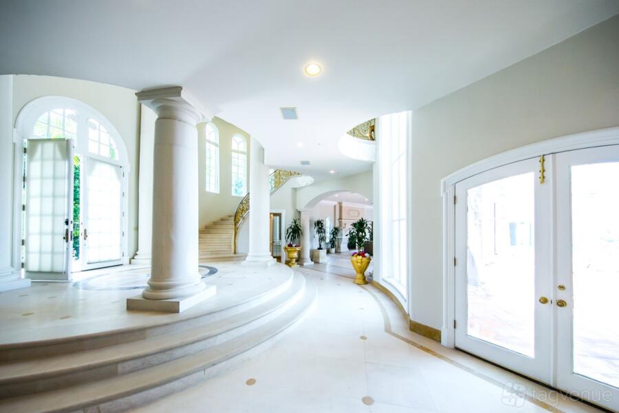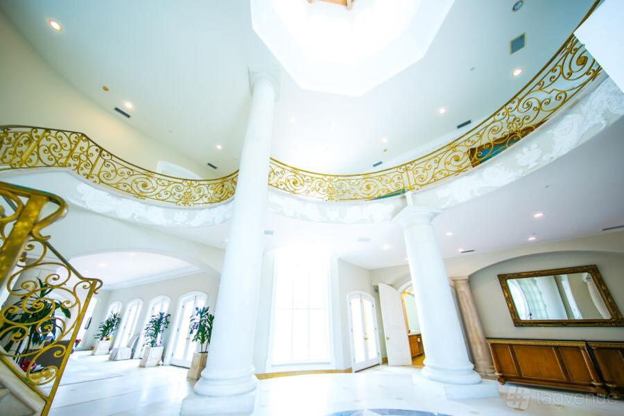 As you enter the venue, you'll be welcomed by a 32-foot high circular foyer that exudes elegance and grandeur. Its magnificent Tuscan columns and golden barriers frame your view of the inspiring surroundings, setting the stage for an unforgettable event.