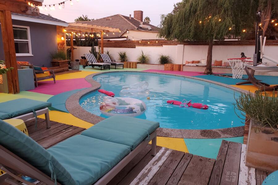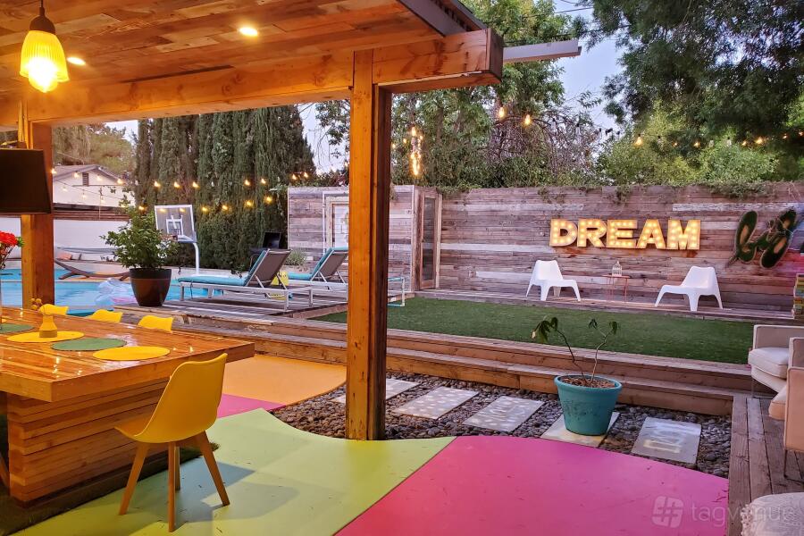 Unwind by the shimmering pool, framed by lush trees, or find zen in the thoughtfully arranged lounging areas. Whether you're seeking a space for a mindful retreat or a dynamic photoshoot, our outdoor haven offers an eclectic blend of modern elegance and rustic charm, ensuring every moment spent here resonates with purpose and beauty. A place not just to stay, but to experience, dream, and create. Perfect for those looking to capture memories or embark on a journey of self-discovery.