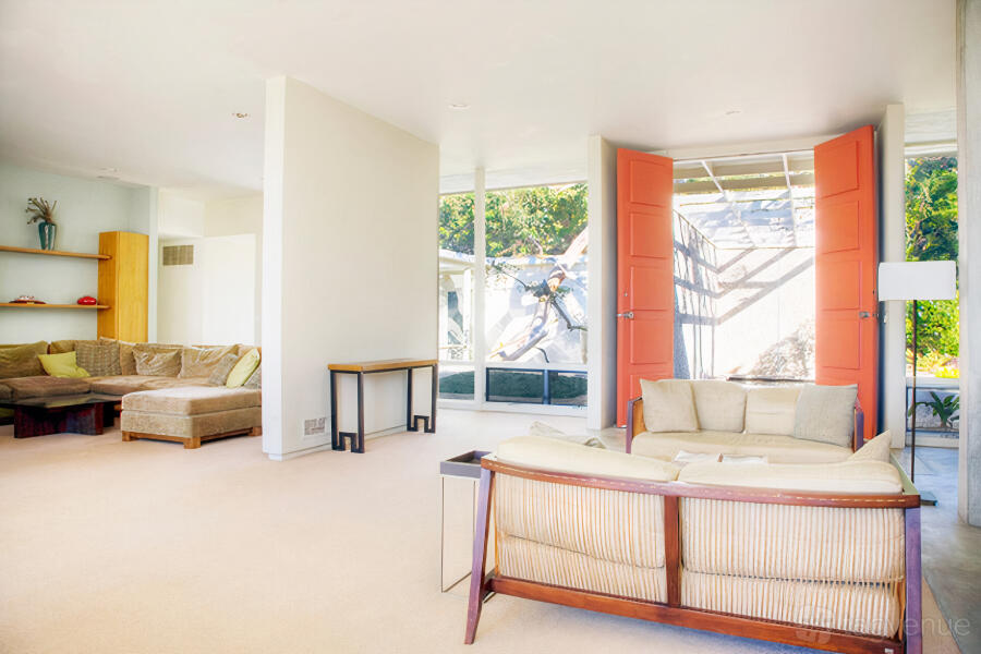 This authentic Mid-century modern gem welcomes you with a parking space for two cars, ensuring convenience in the heart of opulent Beverly Hills. Additional on-street parking in the area offers practicality for guests.