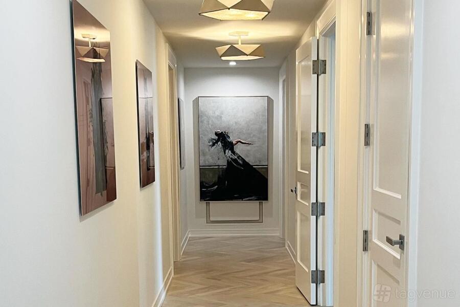 The combination of contemporary art and modern design creates an atmosphere that is both sophisticated and inviting, setting the stage for a memorable event.