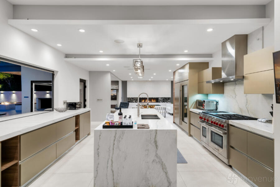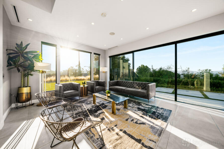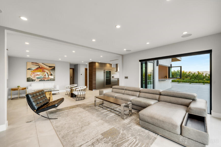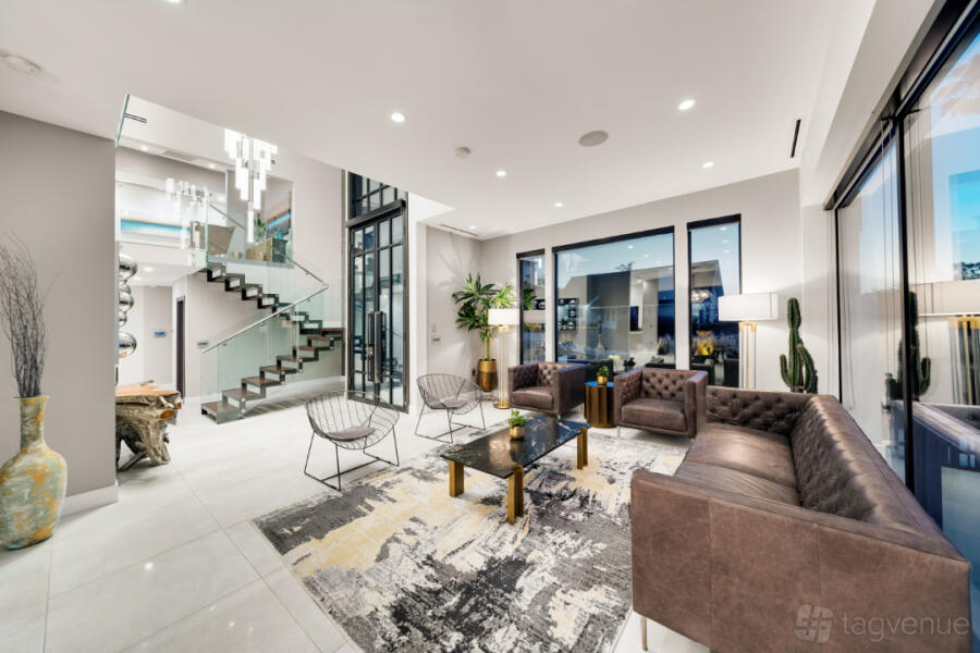 The interior's allure is further heightened by its sleek furniture, ultra high-end finishes, and expansive walls of glass, creating an unparalleled aesthetic. This property stands as a testament to modern luxury living. Beyond the meticulously designed interiors, the outdoor space is equally impressive, featuring an infinity pool, a convenient built-in BBQ, inviting fire pits, and an expansive backyard—providing a versatile setting for relaxation and entertainment.