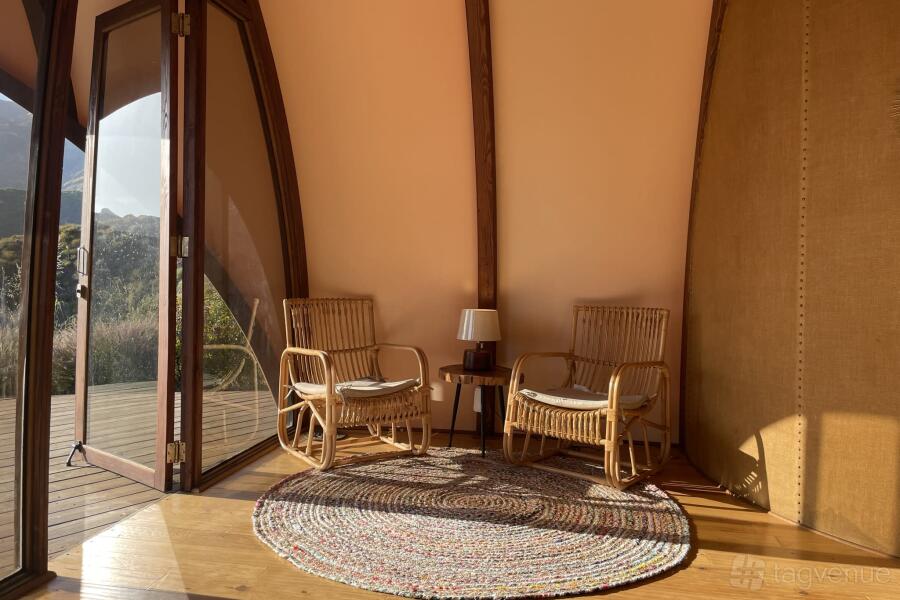 The spacious hilltop deck, with its panoramic views and elegant design, provides a breathtaking backdrop for photo shoots, film productions, and music videos, especially those seeking a connection with nature and unique architectural elements.