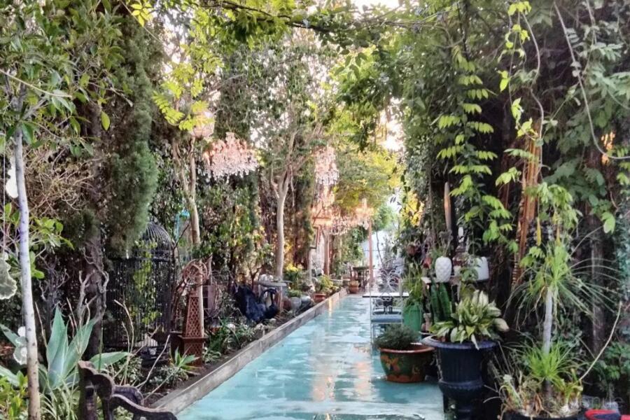 As you step into Mi Alma Gardens, you are greeted by lush greenery, vibrant blooms, and the soothing sound of a central water feature that immediately sets a tranquil tone.