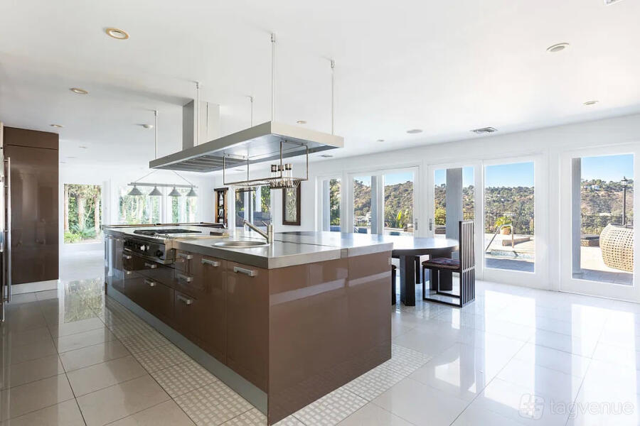 This kitchen connects to the dining and family rooms, which open onto a spacious terrace. Here, you can enjoy an outdoor lifestyle with a swimming pool, a hot tub, a stage for live entertainment, and an additional terrace ideal for BBQs and gatherings. The master suite is a true retreat, featuring direct access to a large balcony with beautiful views. It includes a en-suite bathroom with a tub/sauna, a steam room, and two walk-in closets.