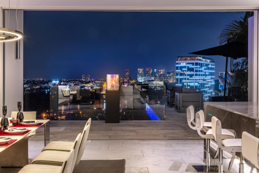 The two-story layout offers a perfect flow for entertaining, with expansive rooms that are both stylish and functional. The attached garage offers parking for two vehicles, adding convenience for your guests. Step outside to a private patio featuring a pool, perfect for lounging and socializing under the California sun. The patio area provides an excellent setting for al fresco dining, cocktail parties, or simply enjoying the stunning city views.