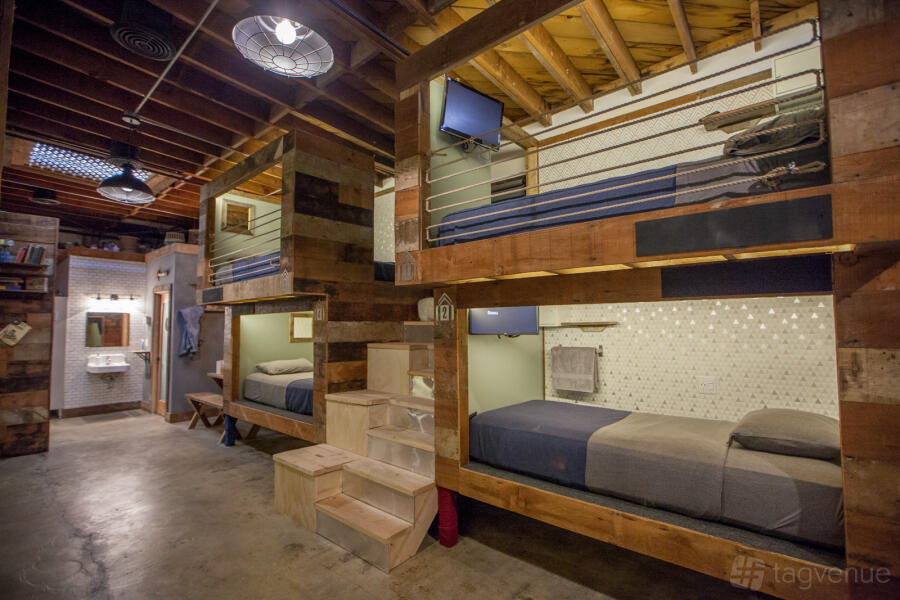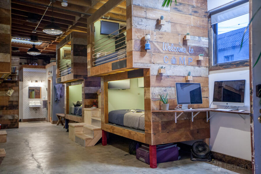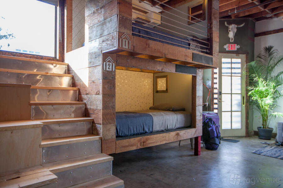 Each pod features a twin-size bed and a desk, adorned with a mural by local artist Dr. Knudson. PodShare’s unique concept allows you to hire the place for your screening, meet people, explore and become part of a community.