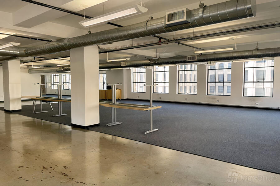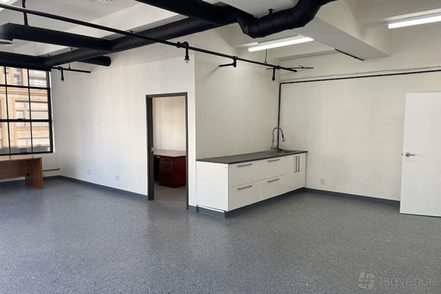 The design includes exposed beams that add an industrial touch, while private restrooms and adjacent parking at Joe’s lot ensure practical amenities. This versatile and well-lit environment is well-suited for a range of creative projects and productions.