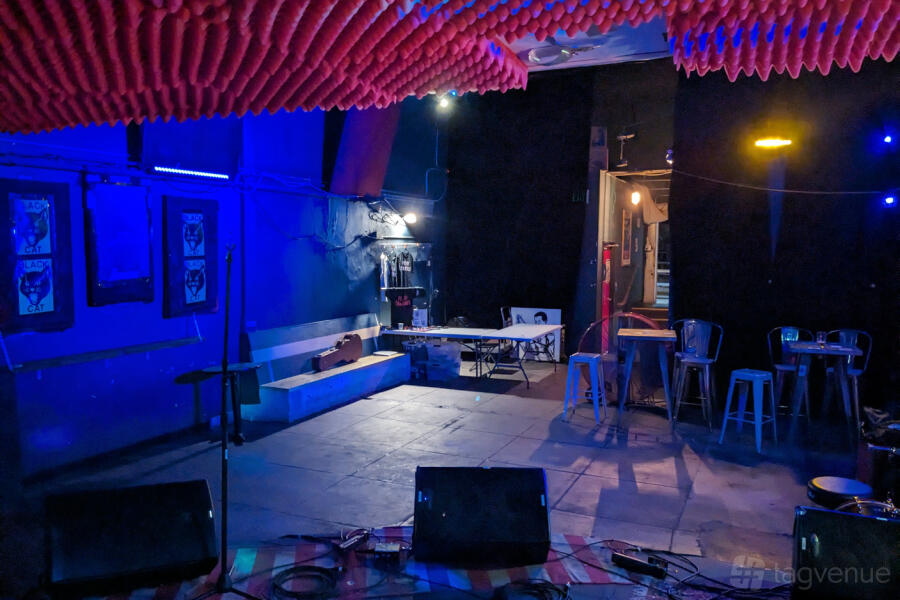 The venue also includes an outdoor patio with picnic tables and a rustic outdoor clubhouse bar. With ample parking space and an adjacent 3,500 sq ft warehouse available for rent, this spot is perfect for concerts, private events, and large gatherings.