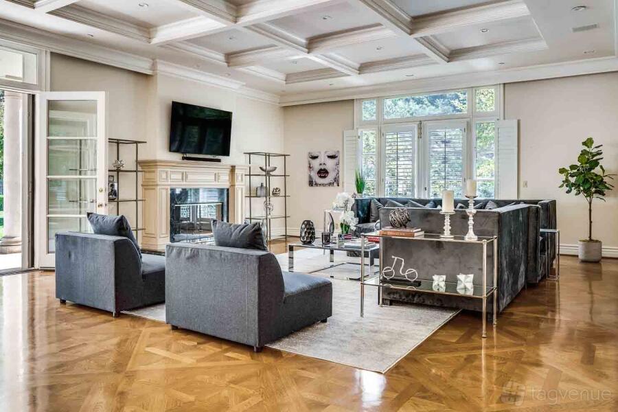 The expansive layout provides ample space for both entertaining and relaxation, including multiple living areas, formal and casual dining rooms, and a center hall that emphasizes the estate’s grand scale. Outside, the estate features lush landscaping, a spa, and serene mountain views that create a tranquil ambiance. The property is also equipped with parking for up to 20 vehicles, ensuring convenience for guests. The Vestone One’s secluded location and resort-like amenities make it an exceptional venue for high-end events, family retreats, or intimate gatherings. Exact address upon booking.