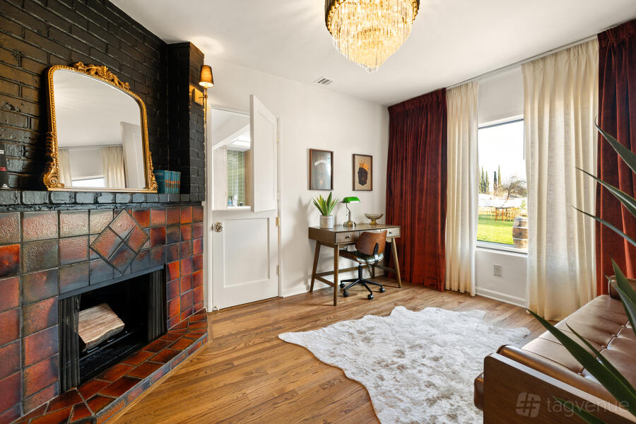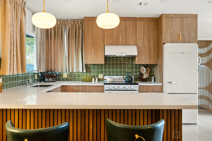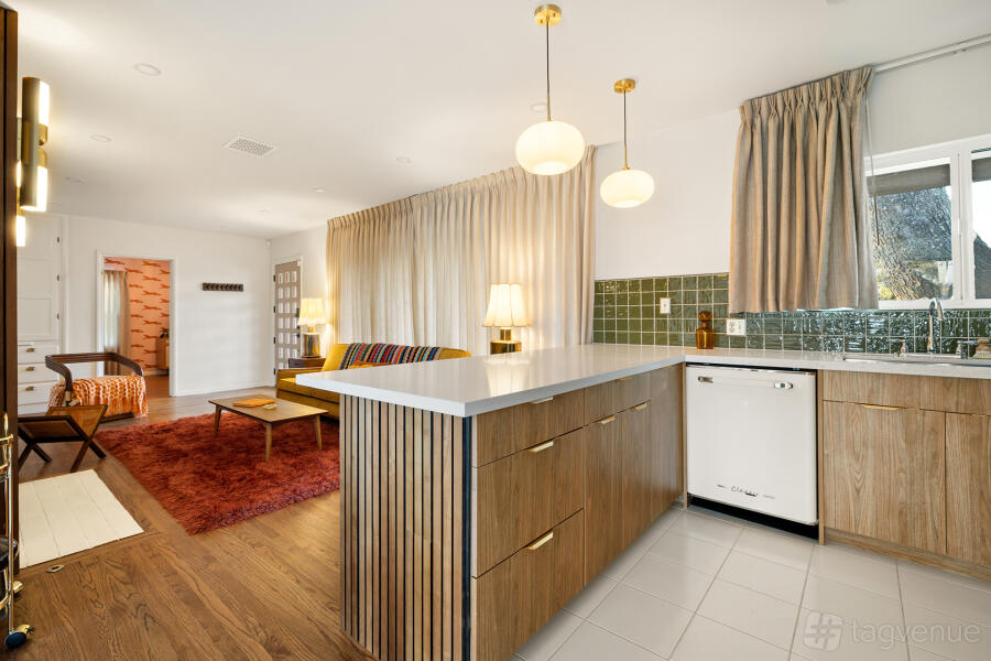 The front of the property is bordered by walls with large commercial gates which provide exceptional access (even for semi trucks), security, privacy, and valet staging. Cars, food trucks, vendor equipment, and portable bathrooms will all fit comfortably along the 25’ wide gravel “loop” bordering the 10’ decomposed granite “track” and massive grass field. The 1,200 SF Ranch House on site is a part of the venue rental and is a fully furnished “set worthy” midcentury-themed time capsule perfect for photos, final pre-ceremony makeup touches/outfit changes, cooking, or just hanging out with a glass of whiskey.