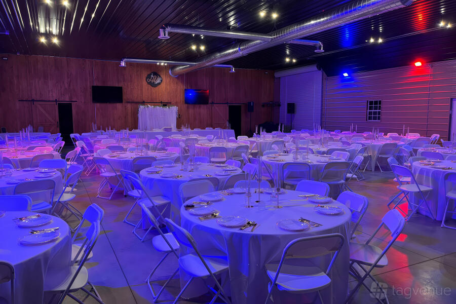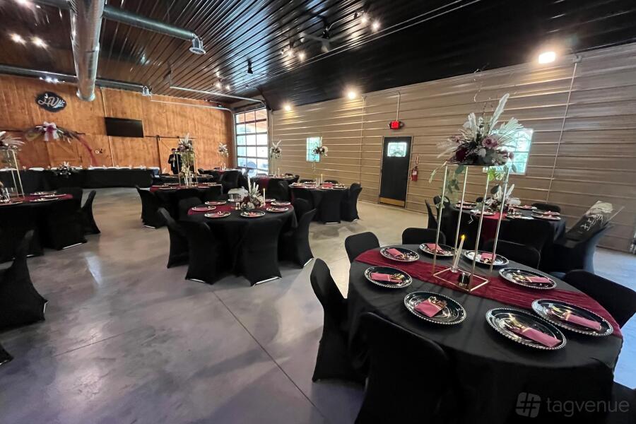 5,000 sq. ft. venue featuring a 1,000 sq. ft. front covered patio and a 2,500 sq. ft. rear patio.