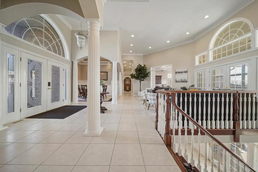 Guests can enjoy stunning views of horses roaming behind white ranch fences from every window, creating a serene and picturesque setting.