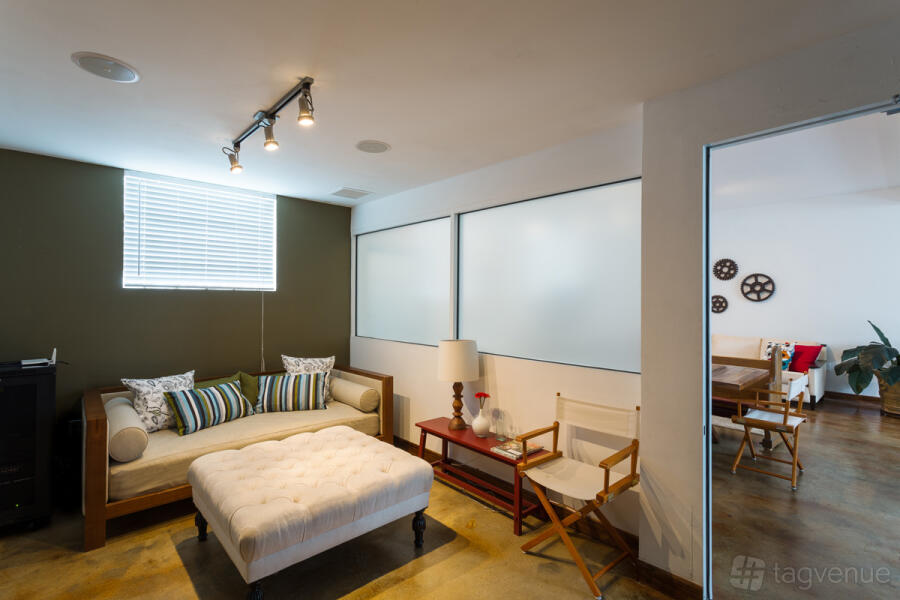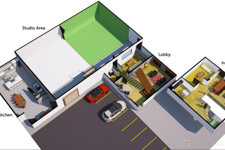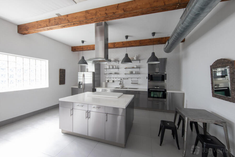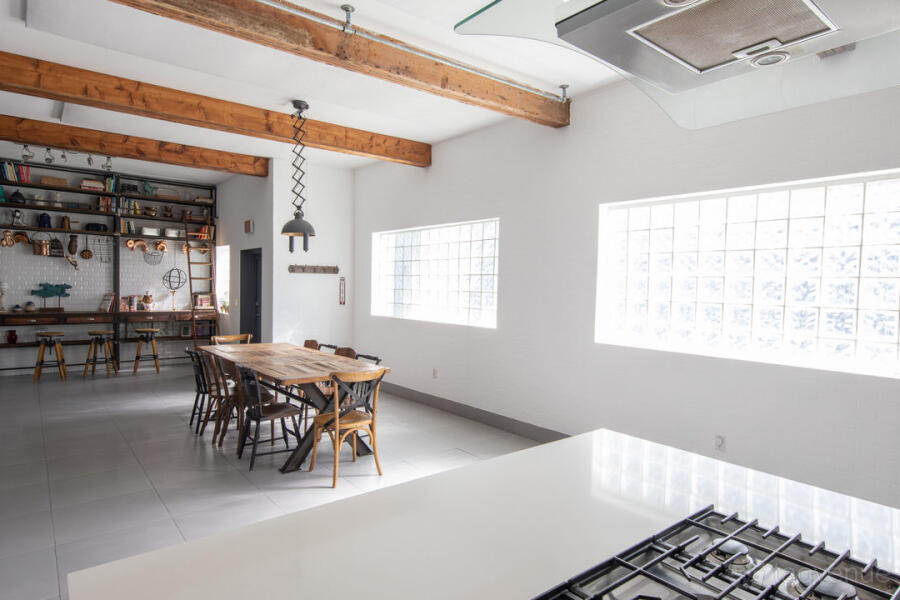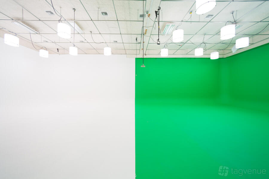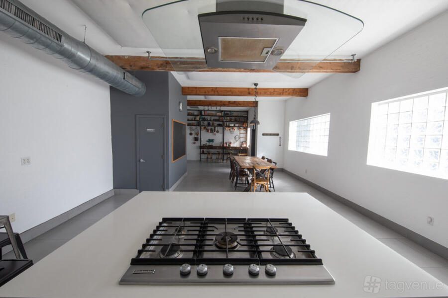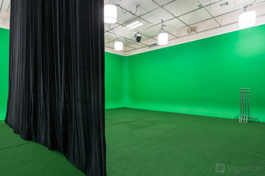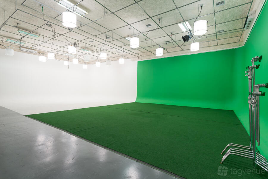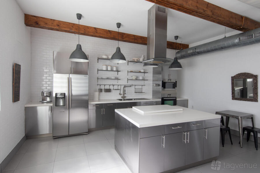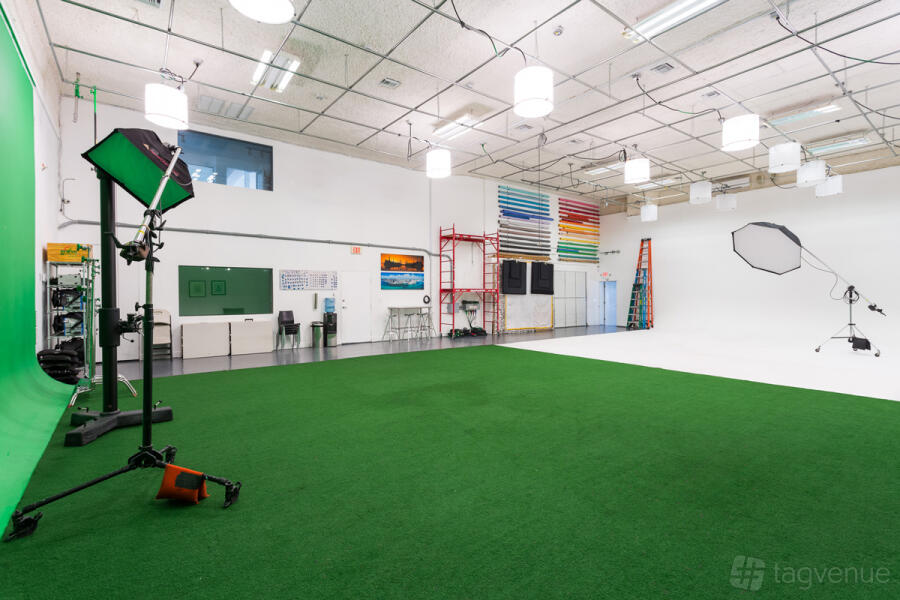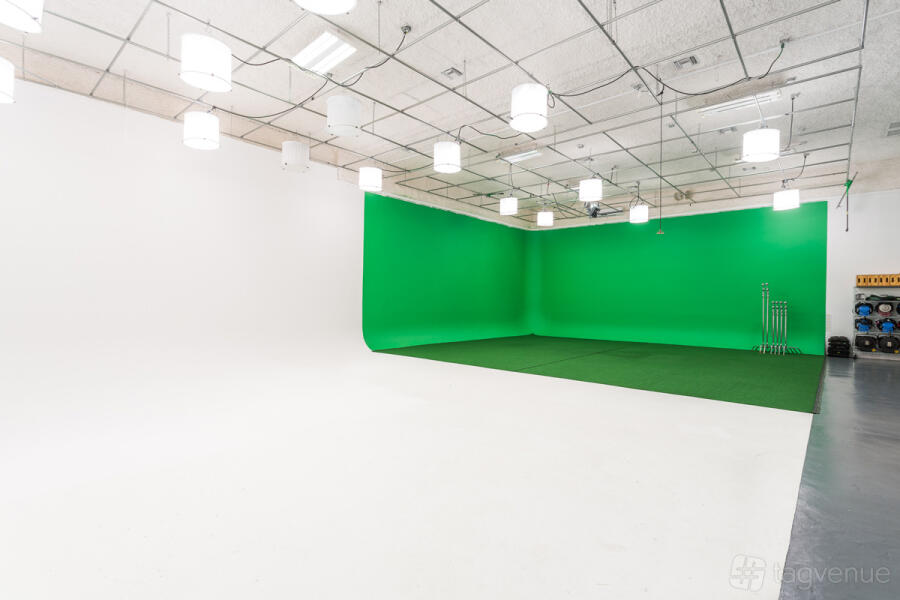 The 4,800 Sq ft studio features a 2,400 Sq. ft shooting space with a 60x40x18 soundproof area. Grove Studio film and photo studio rental also include 30X30 white & chroma key green cycloramas, full grid ceilings with 18 space light 2000W, and a full shooting kitchen.