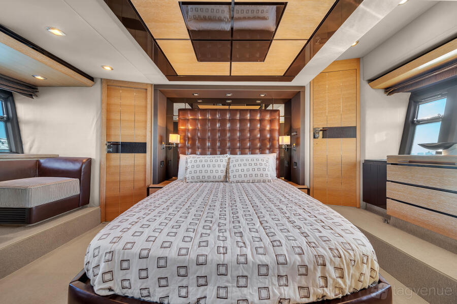 Our yachts are adorned with opulent features, from tufted leather headboards and Hermès cushions to crocodile upholstery and premium stainless steel appliances.