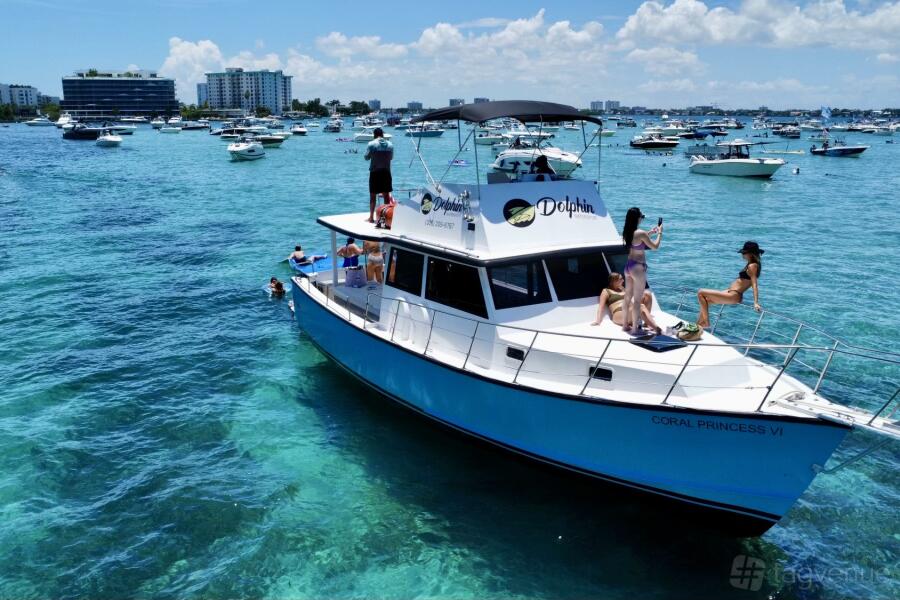 We’ll anchor at Haulover Sandbar, where you and your party can swim, snorkel or could sunbathe enjoy the large picturesque views of the crystal blue waters.
