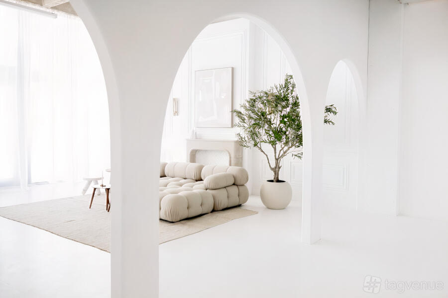 Mint Room Miami is designed to be versatile. It's a 10,000-square-foot space with six studio rooms. It can be used as a commercial photography studio or a party space.