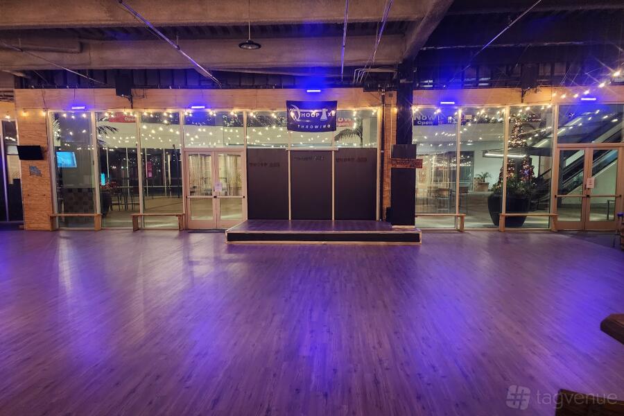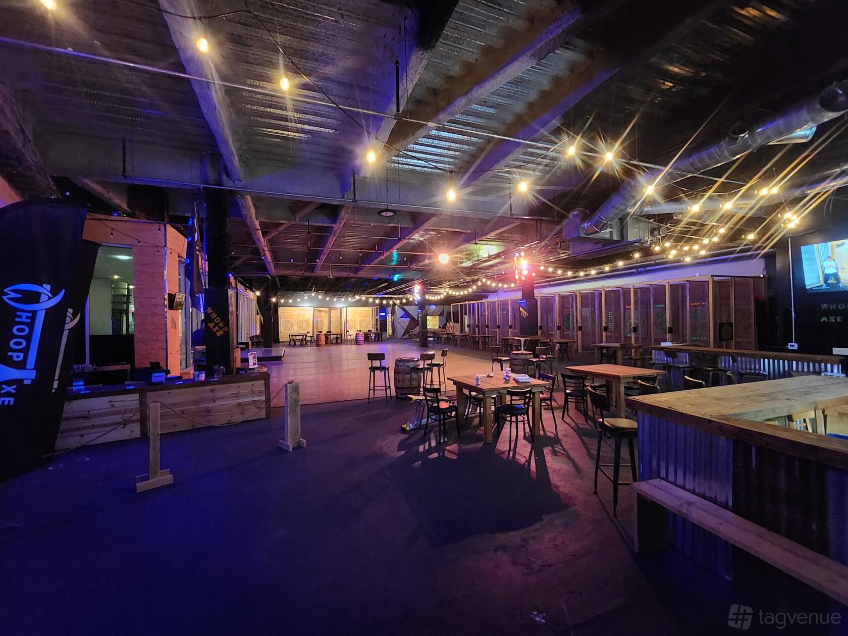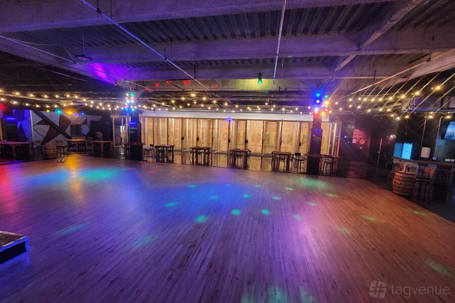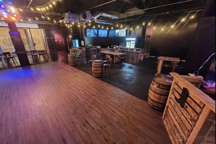 An open, large space with optional fun and team-building. Entertainment activities include dancing, axe throwing, mechanical bull and rage room.