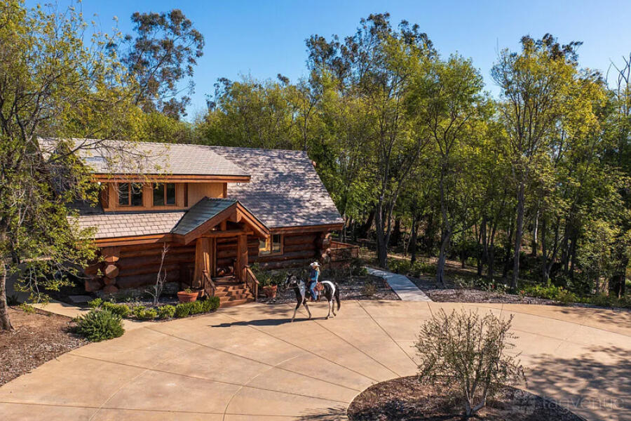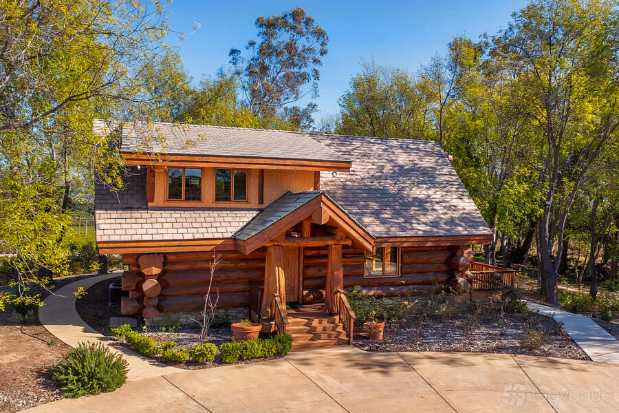 At the heart of this pastural haven lies a stunning Canadian cedar log cabin-inspired main home, boasting three bedrooms, two bathrooms, and 1,950 square feet of luxury living space. The main home presents endless options for entertaining, with bright living spaces adorned with hardwood floors, vaulted wood-beamed ceilings, and balcony terraces that frame breathtaking valley views.