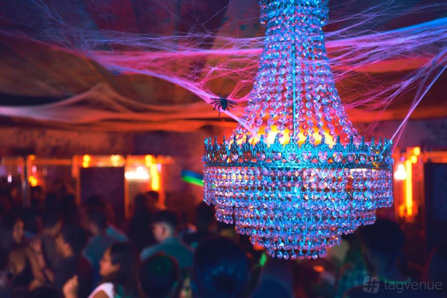 Affordable cocktails, vibey music, and a mix of glow-in-the-dark graffiti and old-timey spooky photos draw a young crowd for a (sort of) secret night of partying.