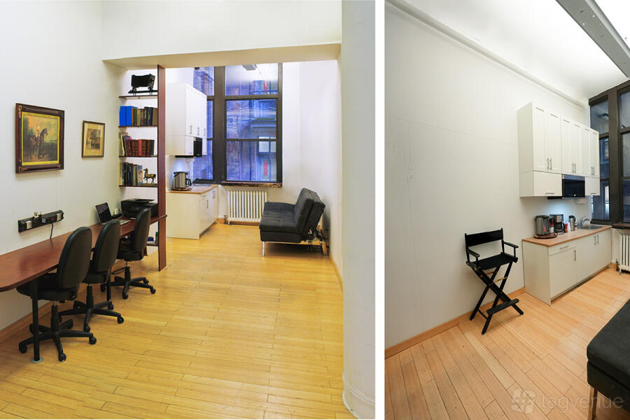 We offer an open space with a post-industrial feel and look that’s perfect for photo and film shoots, interviews, and podcast recordings. It is an operating photo studio with 13-foot ceilings, big windows, and a 25-foot-wide cyclorama.