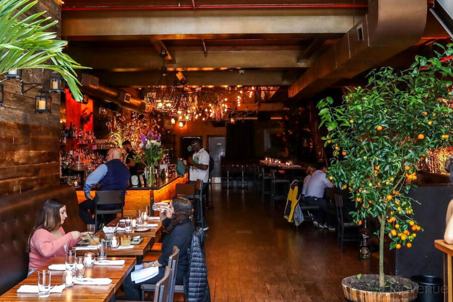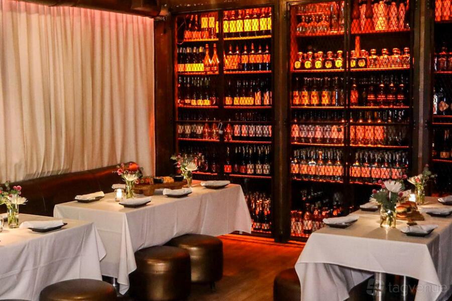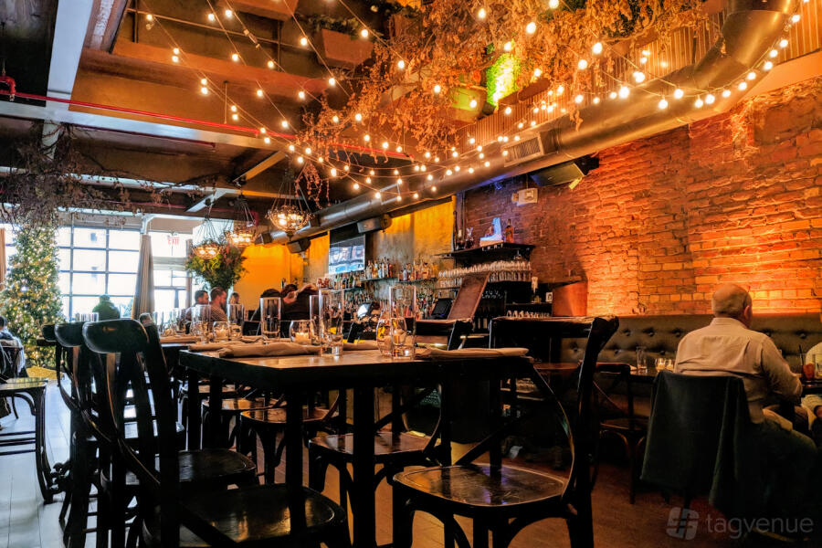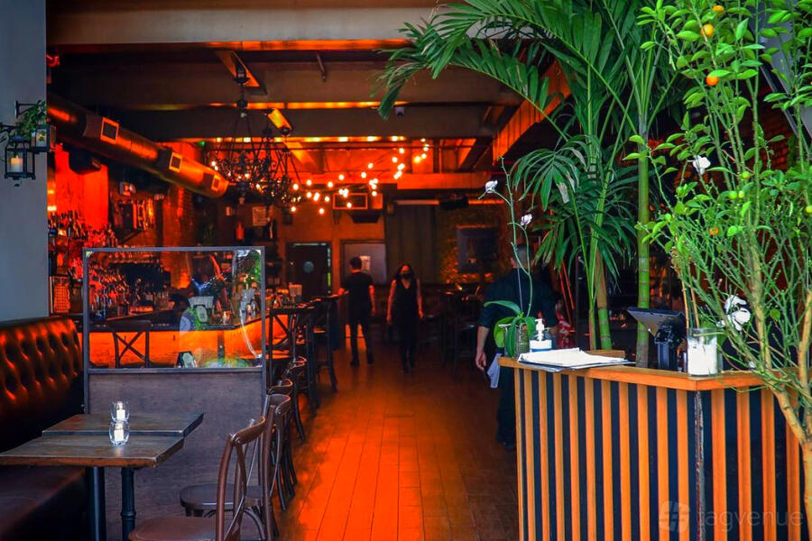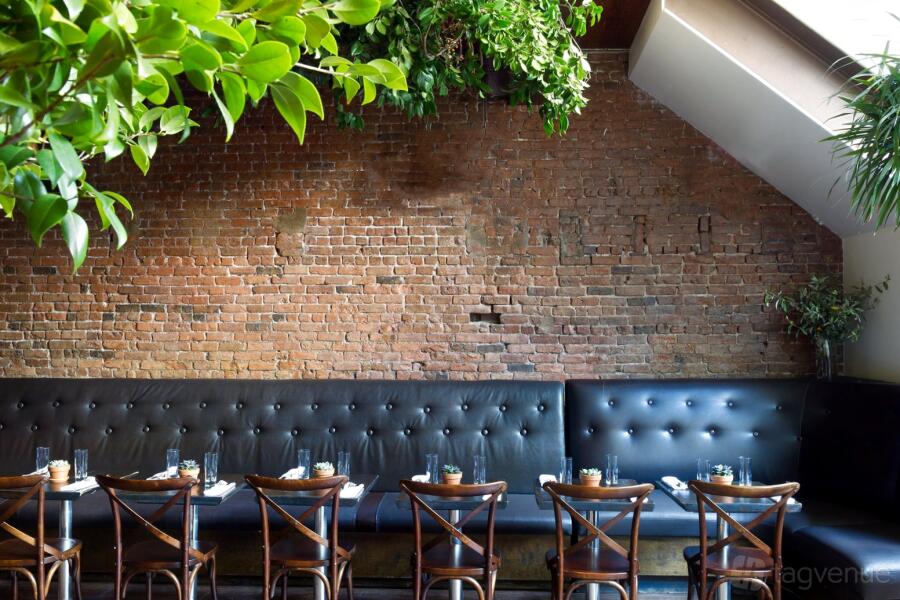 Spanning 3,700 square feet, our versatile venue accommodates everything from formal dining to late-night revelry. The space pays homage to the neighborhood's rich history with a weekly rotation of fresh plants and flowers, enhancing the natural beauty. Design highlights include exposed brick walls, an open loft-like layout, and a glass facade that opens seasonally, inviting in air and sunlight to create a refreshing atmosphere.