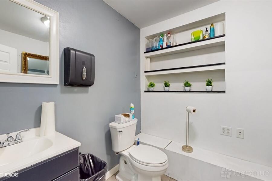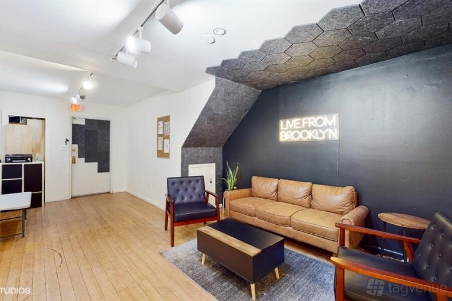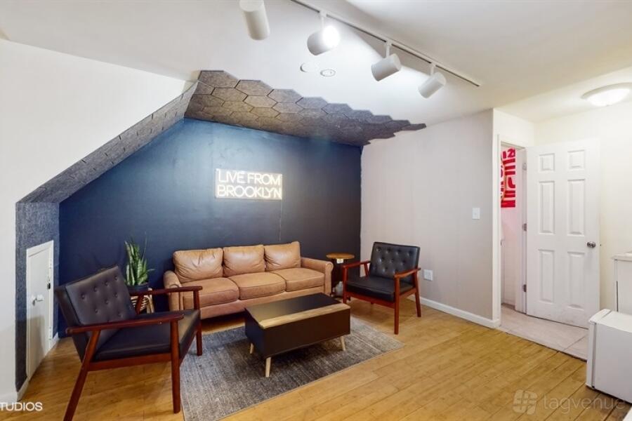 Off to the left of this room is our podcast studio which is often used as a production office, talent holding, or HMU room. Add the extra space to add this space to your reservation. This comes with a second bathroom and entrance.