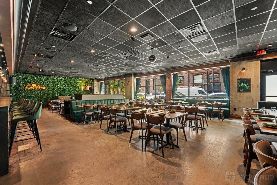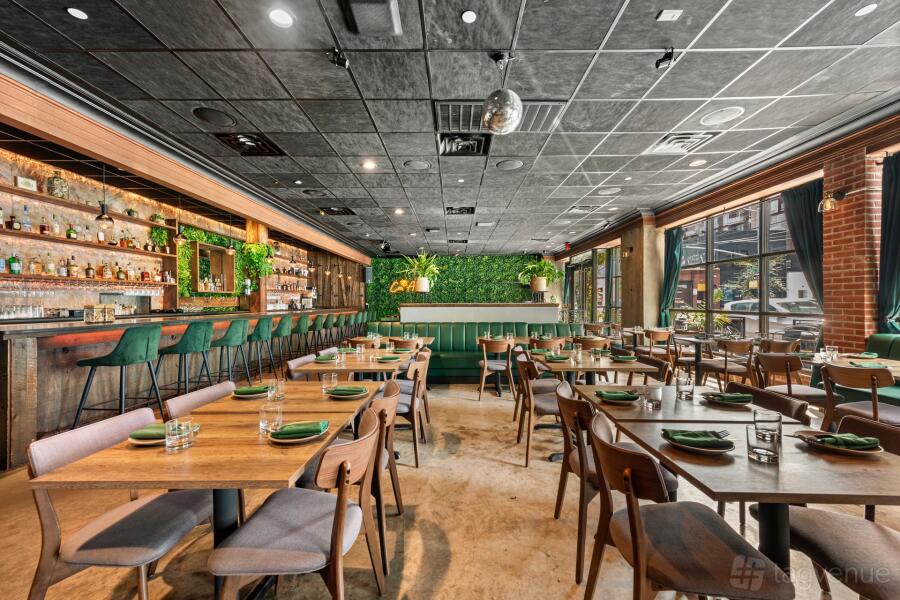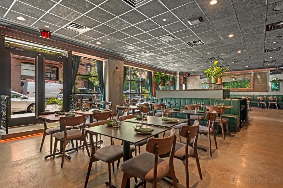Located just 2 minutes from McCarren Park and the Bedford Ave L train, our lively restaurant, bar, lounge, and café is perfect for both small gatherings and big events. We can seat up to 100 guests and hold up to 250 people standing.