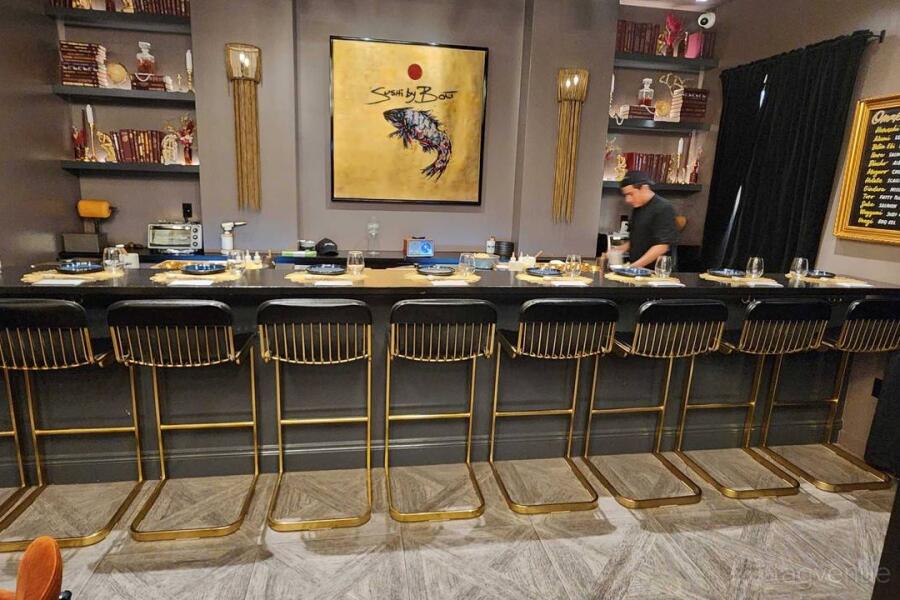 The bar area is an elegant space where expertly crafted cocktails complement the exquisite flavors of our sushi offerings.