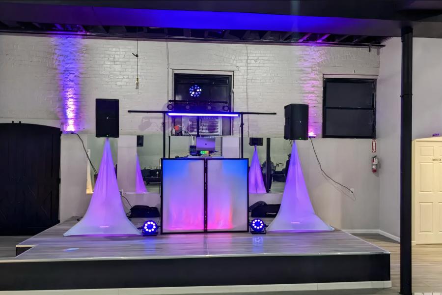 The Ritmo Room comes fully equipped with a stage, perfect for performances or presentations. Adjacent to it, discover a well-stocked bar and a convenient food preparation area complete with a sink.