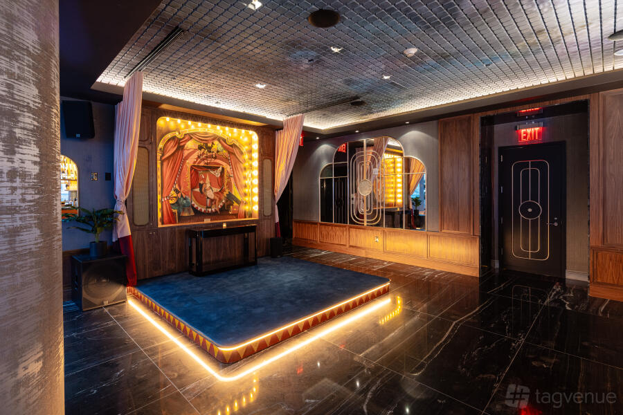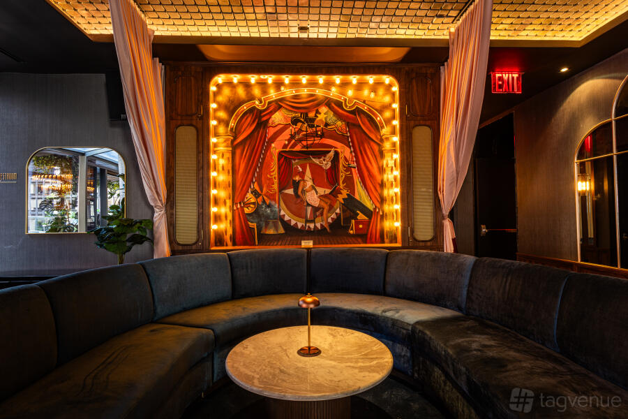 Inspired by films like Babylon and Nightmare Alley, guests will be transported back to the 1930s, a time when theater and live performances offered a vital escape from the hardships of the Great Depression. Our venue features luxurious indoor and outdoor bars, plush lounge seating, and a small stage for presentations, performances, and DJs.