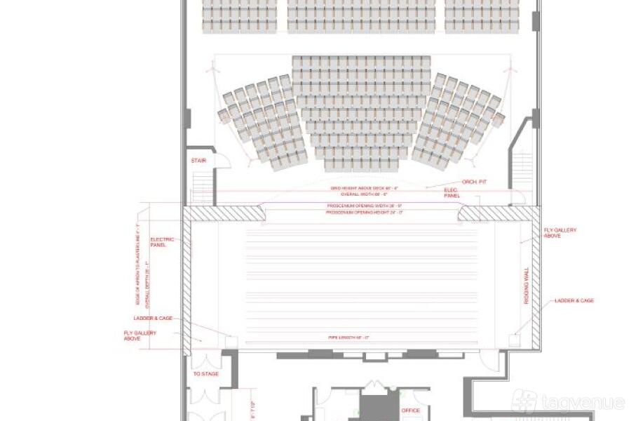 Featuring an exceptionally well-configured auditorium with stadium seating, Stage 42 affords excellent sightlines and a feeling of proximity to the stage. The stage and orchestra pit are comparable in size to many Broadway theatres, and the backstage and dressing room areas are expansive and accommodating. The interior décor blends exposed technical infrastructure with warm, contemporary colors, and includes reproductions of historic Broadway artwork from the Shubert Archive collection.