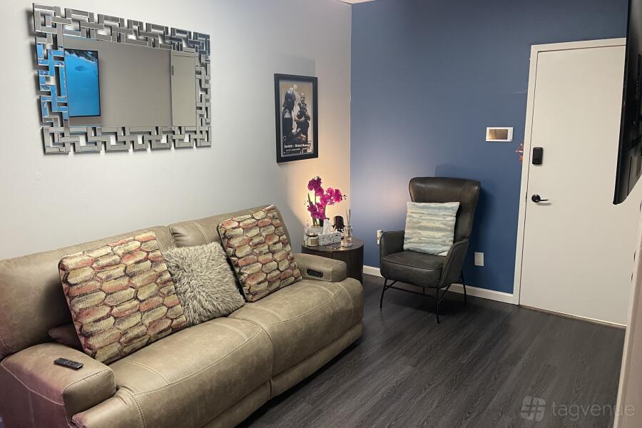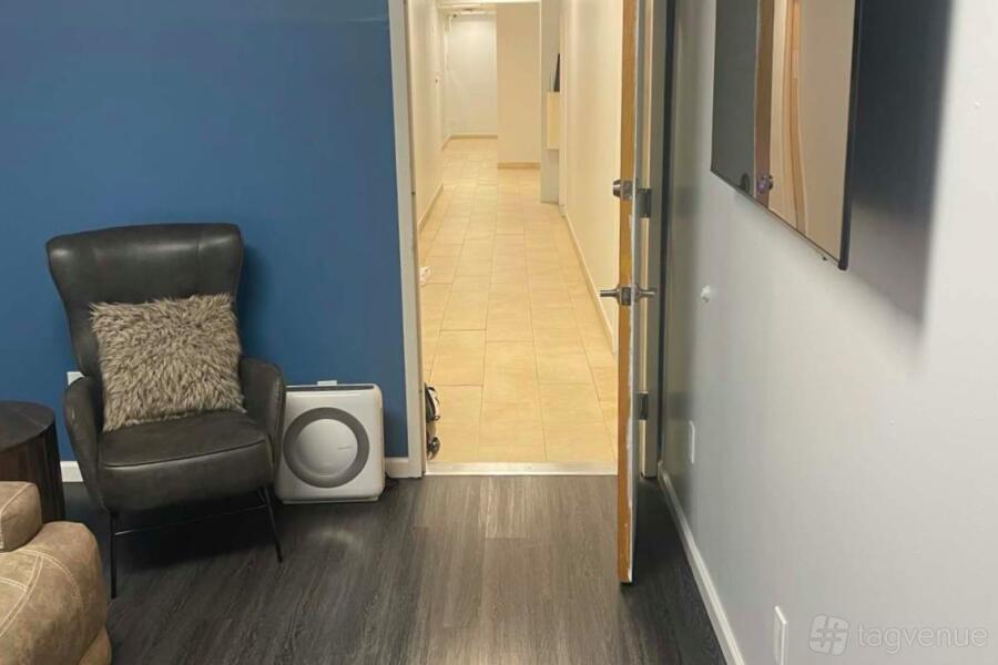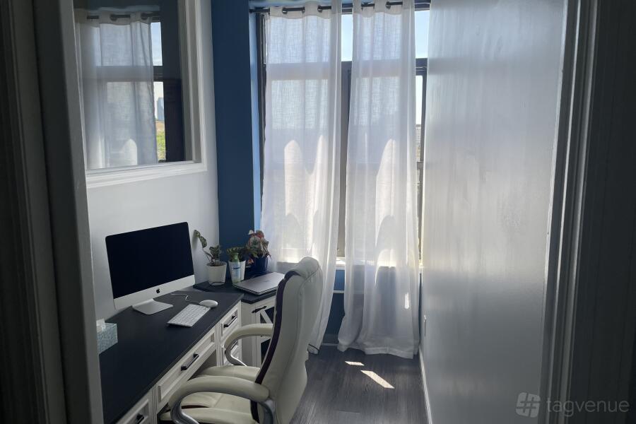 If sunshine were a space, it’d be this one. Bright windows, chill vibes, and modern minimalism make it ideal for shoots of all kinds. Plus, there’s fast Wi-Fi, a snazzy red fridge that’s practically begging for an Instagram feature, and plenty of quiet to keep your takes clean.