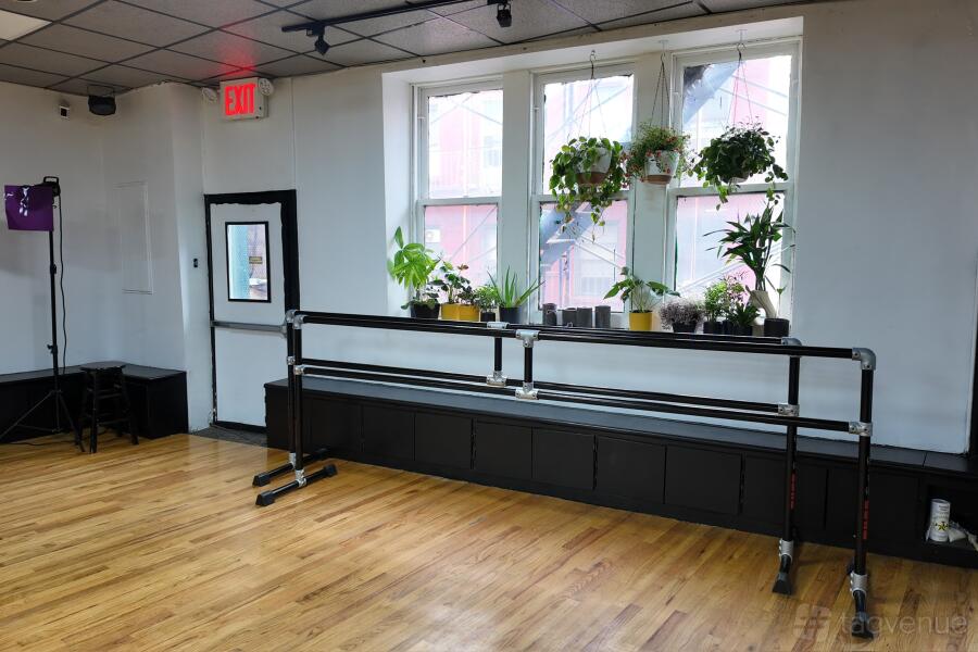The studio can accommodate up to 75 guests standing and is equipped with climate control, two restrooms, yoga mats, resistance bands, and a projector with a screen for classes or screenings. It is located at 16 Pell Street, just a few minutes from major subway lines and surrounded by great restaurants and the vibrant energy of downtown New York.
