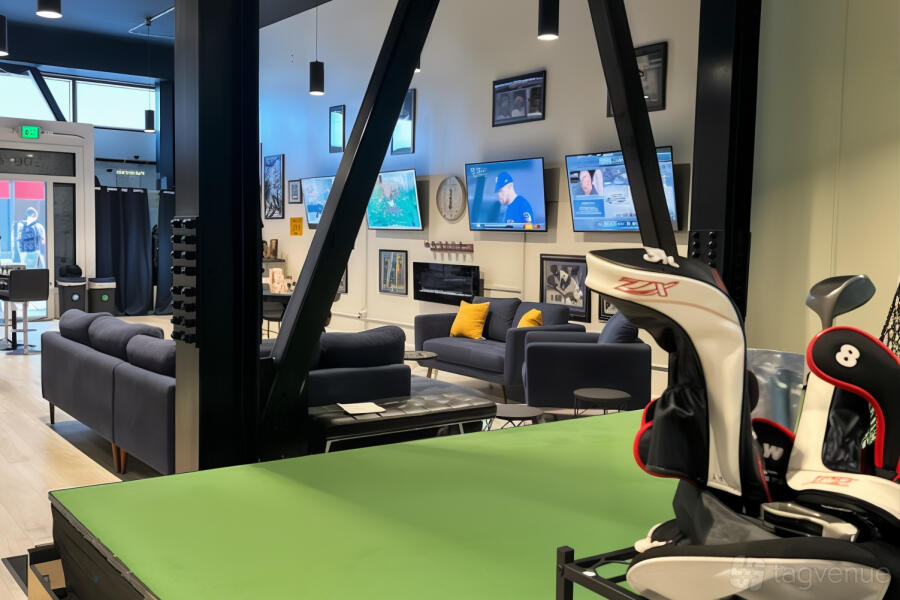 The venue features cozy lounge seating, private tables, and multiple screens, providing a versatile setting for both small and large groups. PrimeTime Golf Club combines fun and function, offering an immersive atmosphere for all types of gatherings.