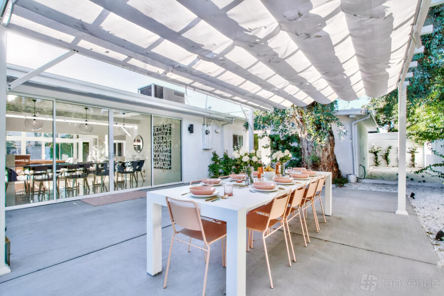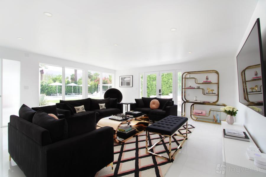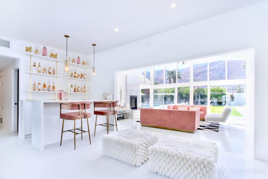 The space consists of a 3,500 sq ft, four-bedroom, six-bathroom home and a detached casita. The property is walled and gated, has on-site parking, and allows for flexibility in reconfiguring the furniture or delivering the space empty of all contents.