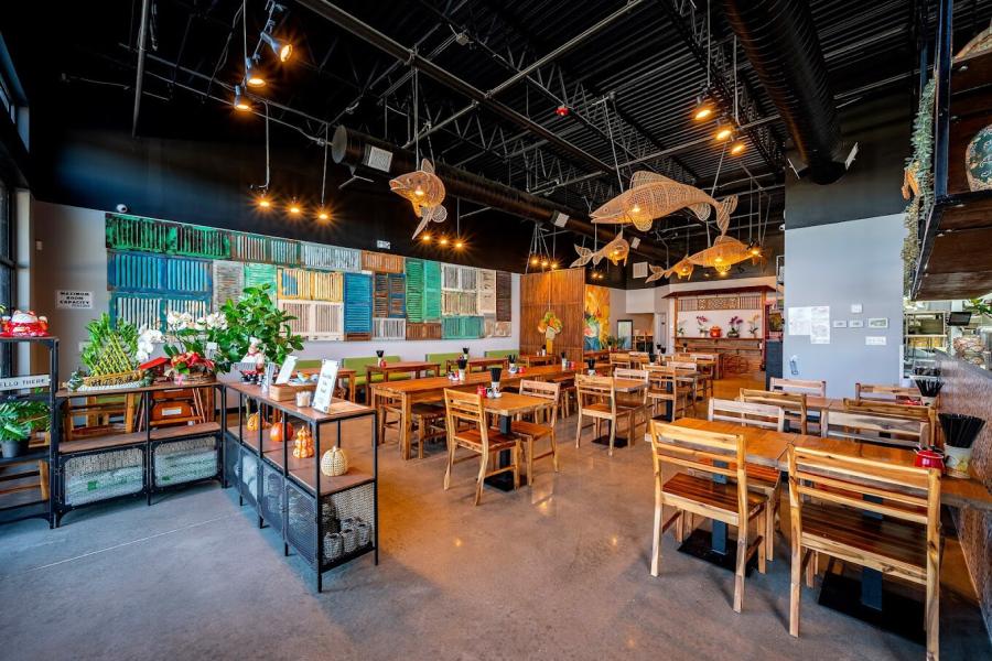 As you step inside, you'll be greeted by a stylish yet cozy interior adorned with modern Vietnamese accents, creating a fusion of tradition and innovation. The warm lighting and thoughtfully curated decor set the stage for an unforgettable dining experience.