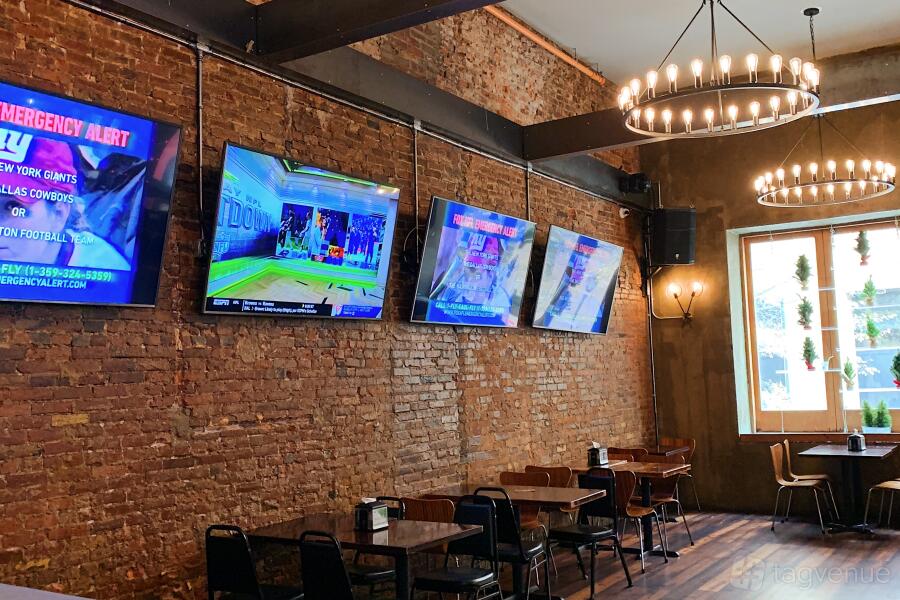 This casual sports bar with a capacity of 100 to 200 people, a full bar, catering on site, audio/visual capabilities, DJs, and a dancefloor, has the space for all types of parties and sizes.