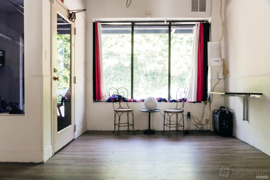You will also find a small lounge and mirrors. It is quiet and private. Great for solo creatives, pop-ups, or content shoots that need space and focus.