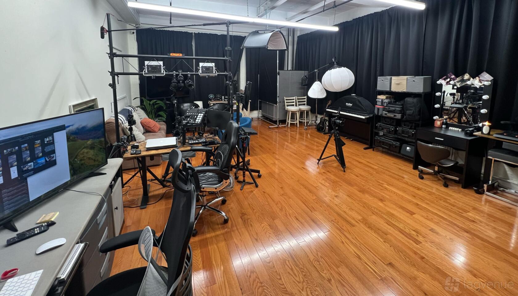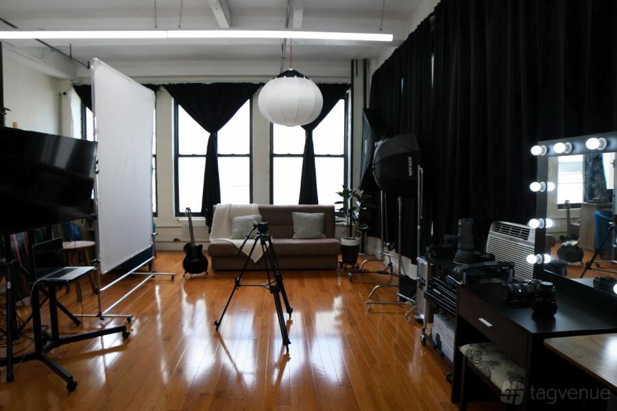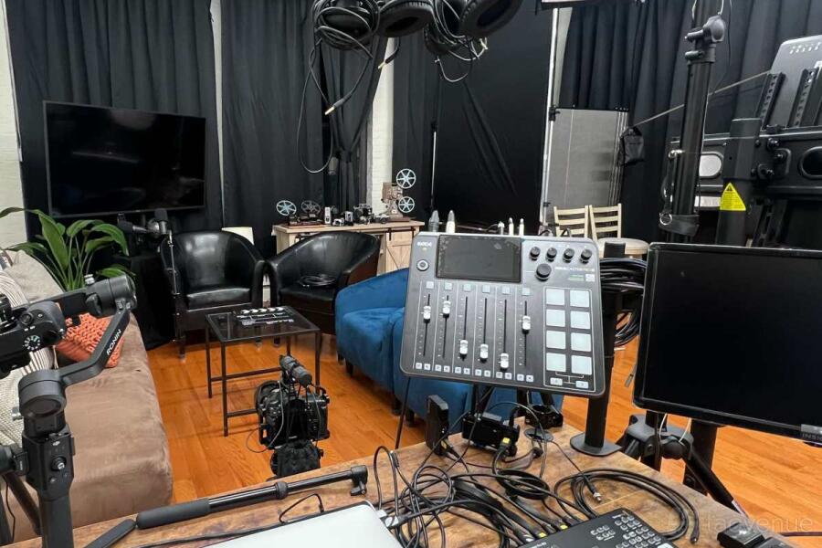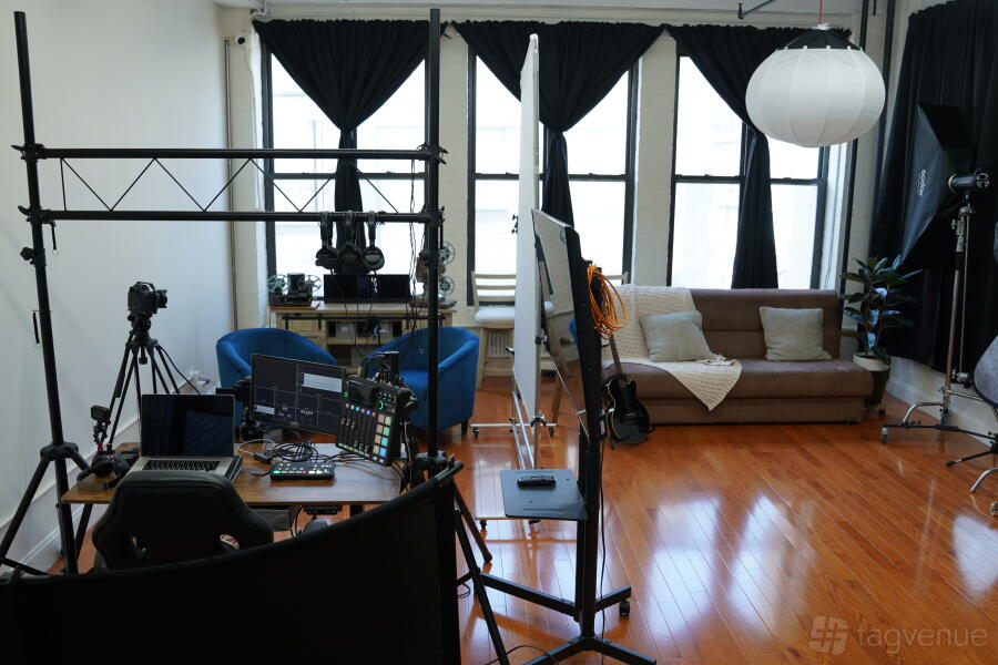 The studio is filled with abundant natural light throughout the day, perfect for achieving that warm, natural look. For complete lighting control, industrial blackout curtains can be used to block out sunlight as needed. Fully equipped with cutting-edge photography and video gear, our space offers comprehensive lighting setups and multiple 4K cameras to ensure professional results. It’s podcast-ready, complete with high-quality audio equipment, enabling you to produce studio-grade recordings with ease. While the building is home to various offices, noise levels are minimal, making it suitable for standard sound recordings.