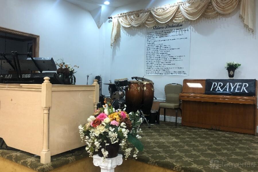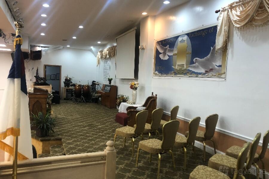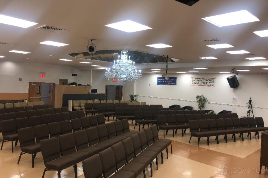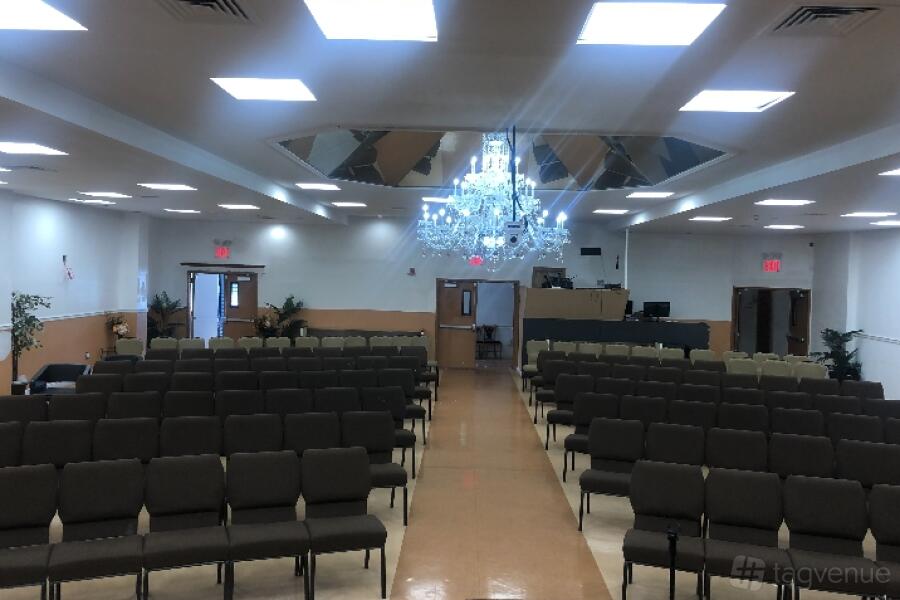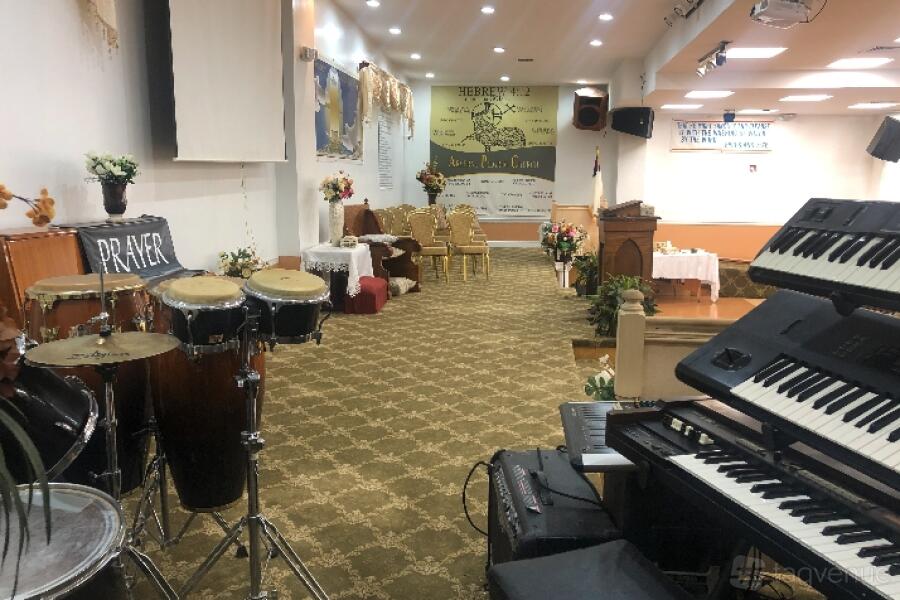 Additional spaces include a foyer, hallway entrance, small kitchen, pastor’s office, and instruments. Spacious and production-friendly!