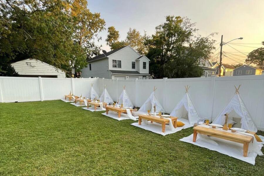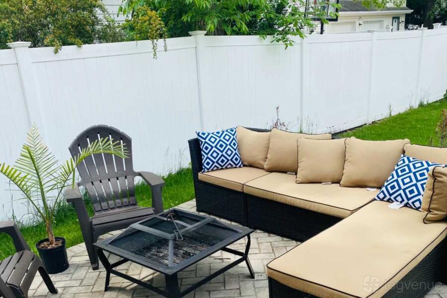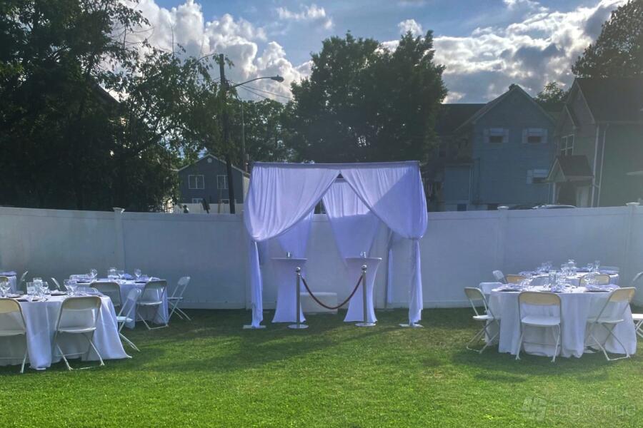 The space is surrounded by a fence and has comfortable seating. Catering is allowed, so you can easily bring in food and drinks for your event.