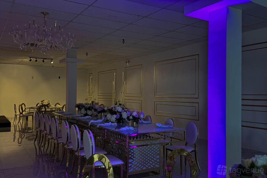 The venue features a stylish interior with modern amenities and elegant décor, making it ideal for high-end occasions such as weddings, quinceañeras, corporate conferences, and private parties.