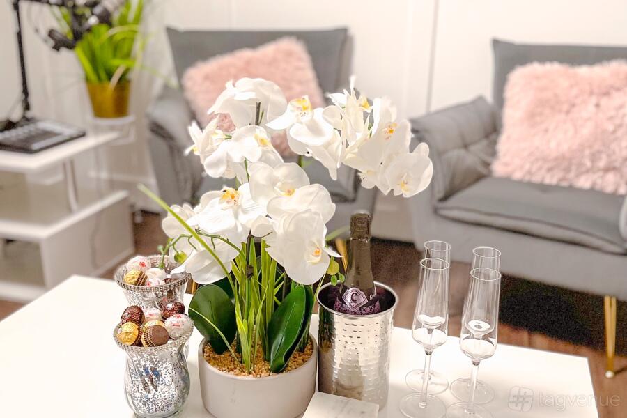 Relax in our chic lounge areas between takes. Built by women, for women, this studio is a supportive space for female-led projects and collaboration.