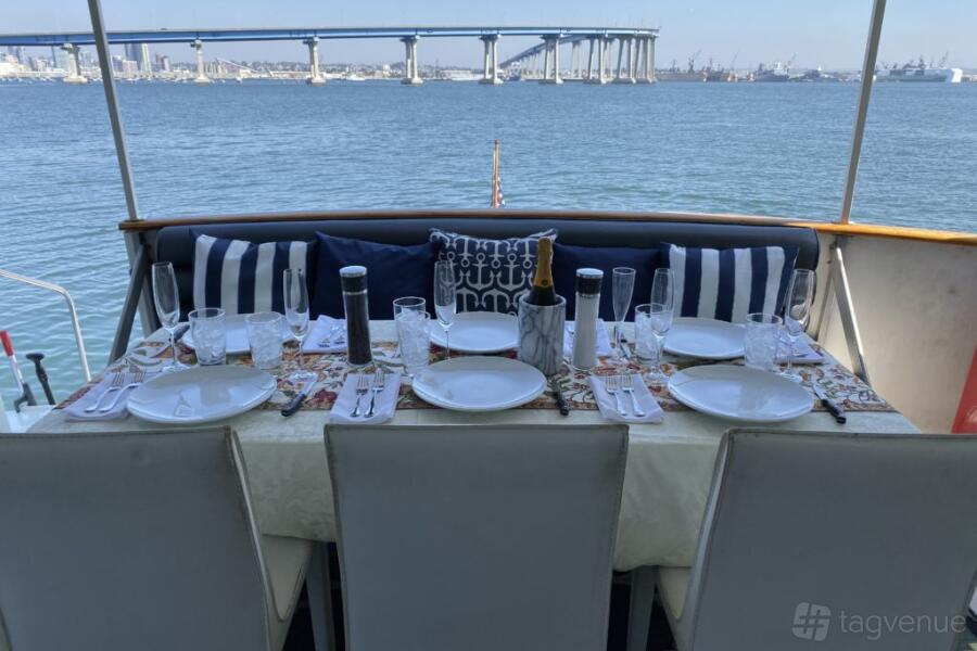 With the amazing San Diego skyline, a private setting, and customizable options, the Champagne Yacht is San Diego’s most talked about private event experience. Enjoy cruising the San Diego Bay aboard a private yacht. The Champagne yacht is perfect for corporate events, team-building activities, birthdays, wedding celebrations, anniversary parties, family reunions, graduation parties, proposals, and celebrations of life/burial at sea.