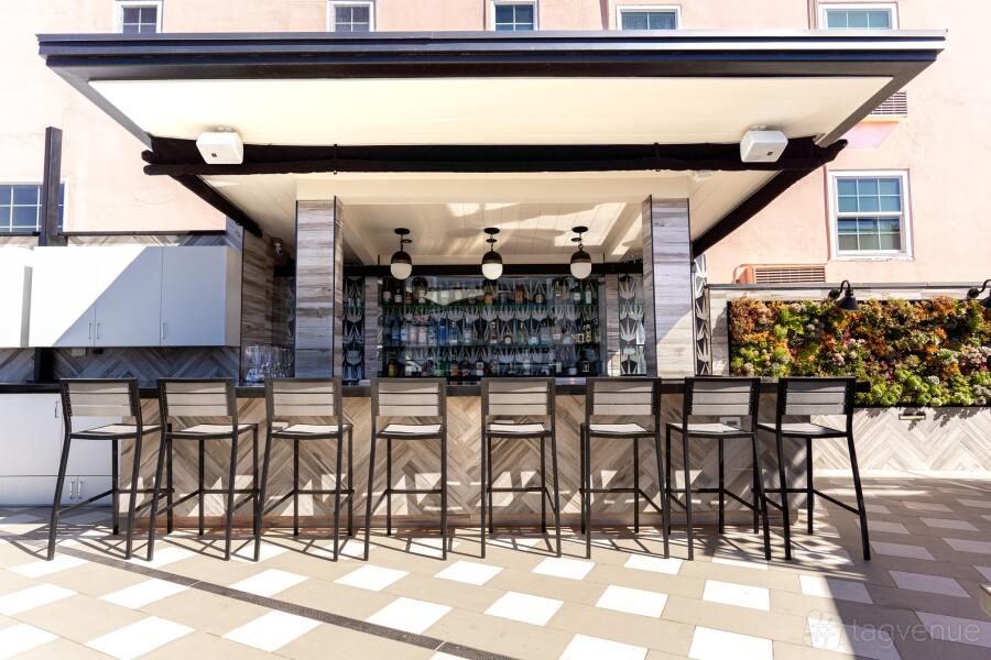 Upon entering, guests are greeted by a visually stunning alleyway and stairwell leading up to the bar, which features outdoor seating. This contemporary rooftop bar and lounge is the ultimate place to socialize, and it has everything you need to satisfy whatever you may be craving. This truly unique venue is unlike any other you’ll find in Southern California.