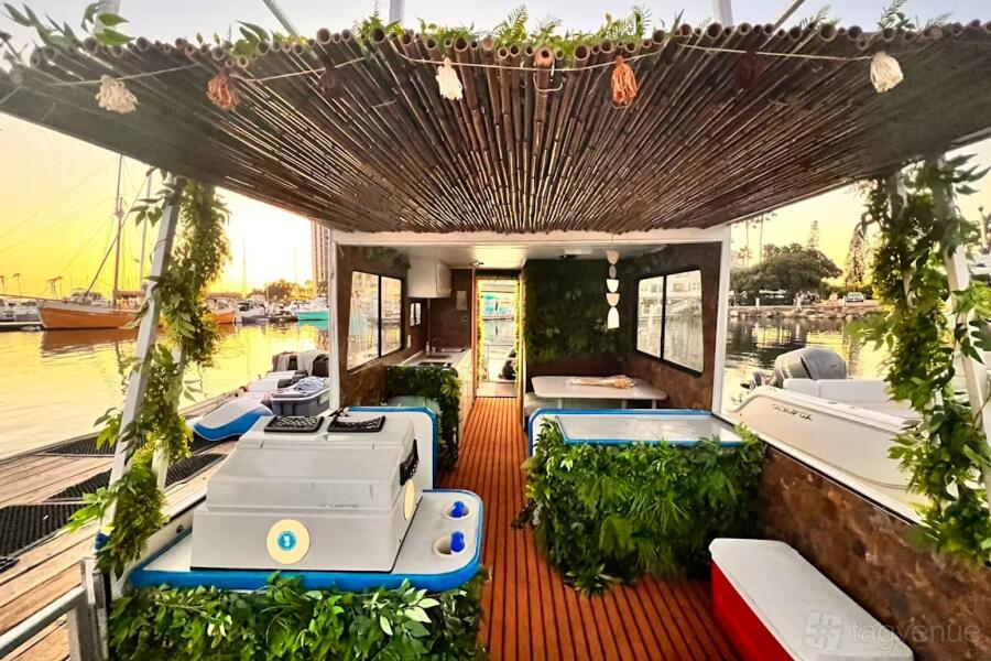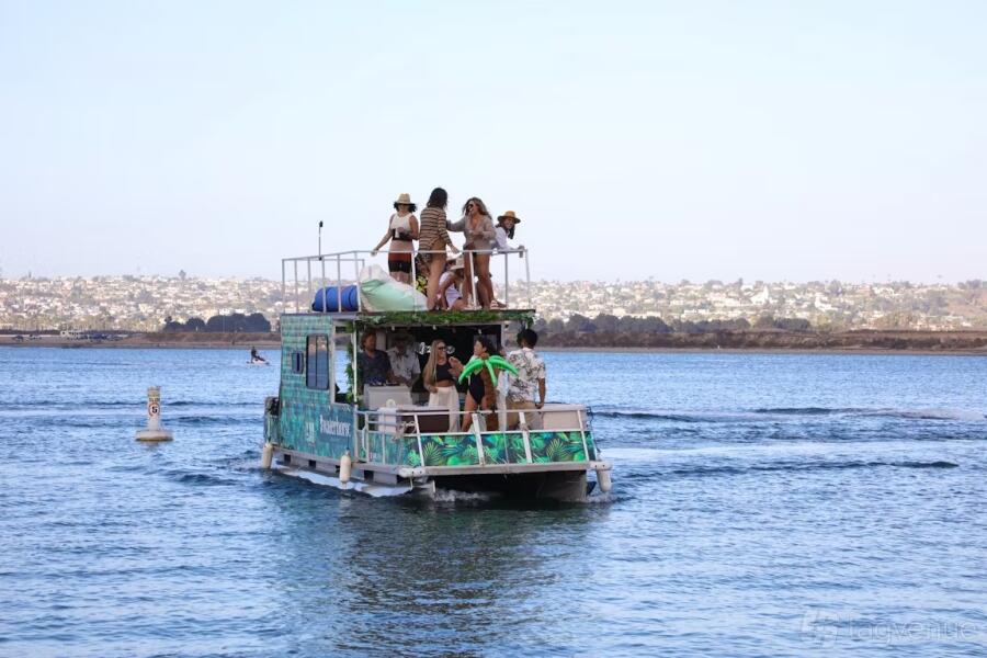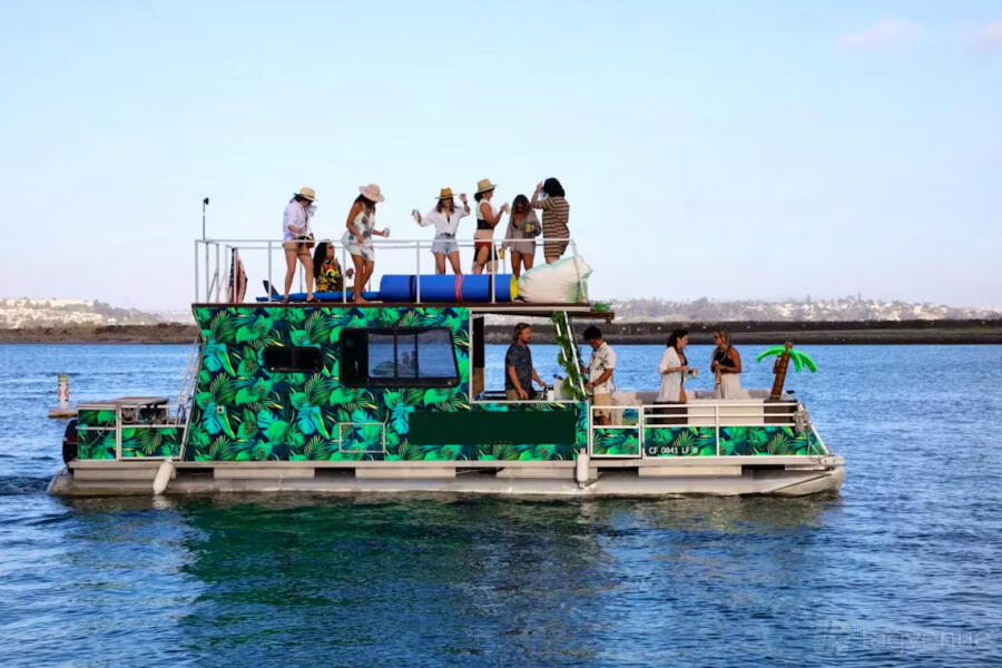 Ideal for themed gatherings, the Island Time is a 32 ft 1992 Crest pontoon remodeled that comfortably hosts 12 guests. This floating Bali house features include a spacious deck, cushioned benches, and a Bluetooth stereo, making it perfect for relaxed bay cruises.