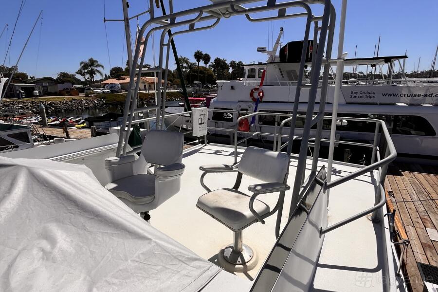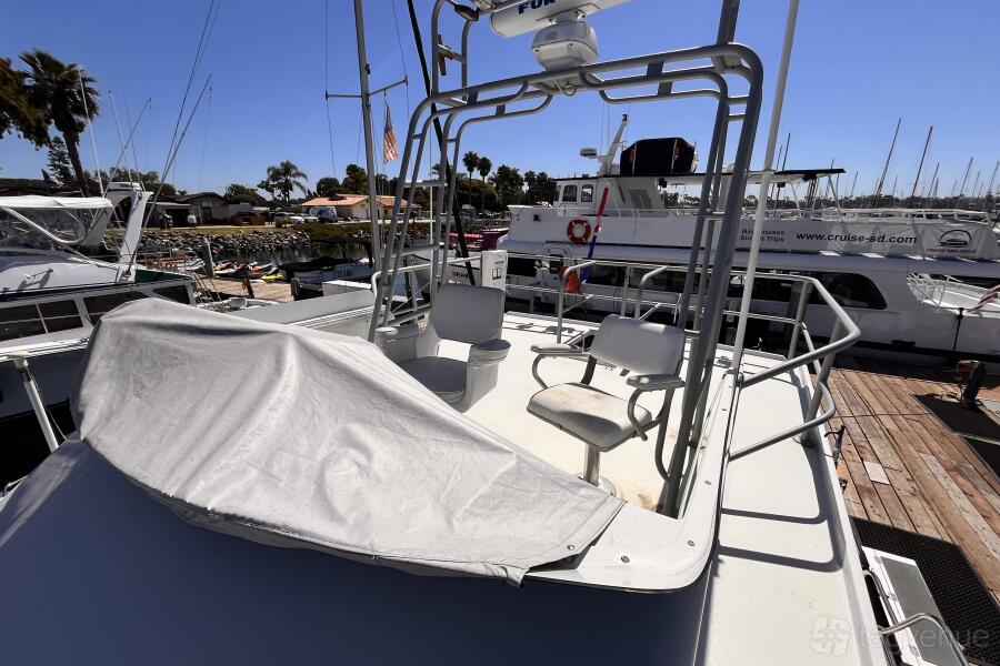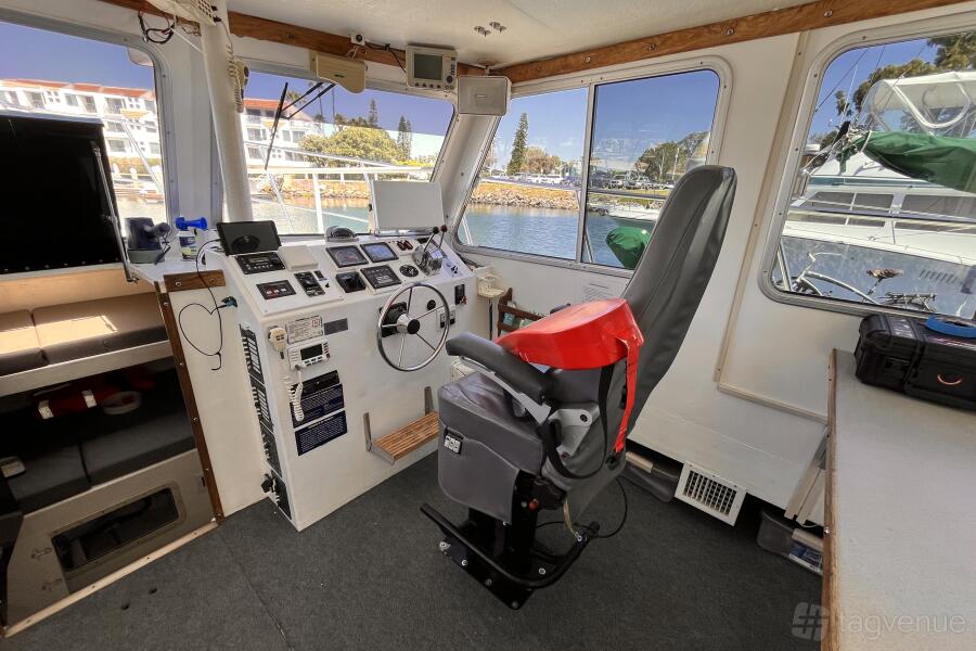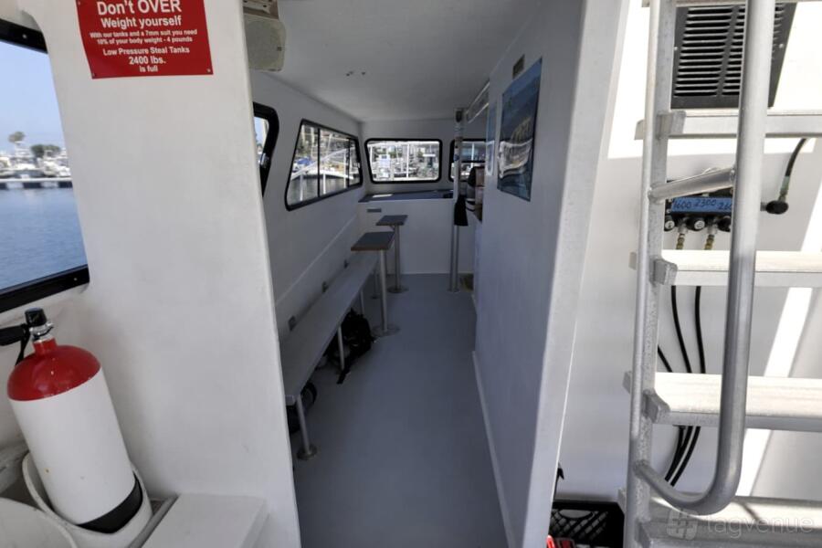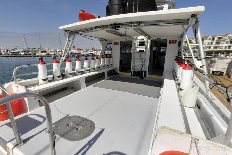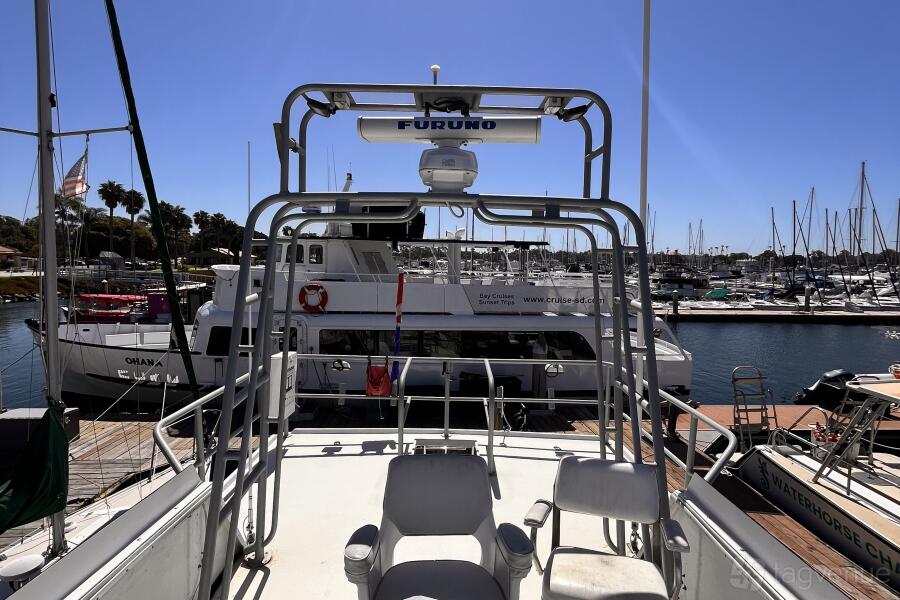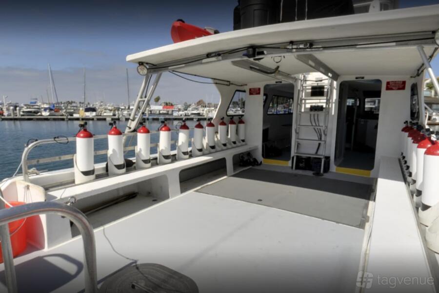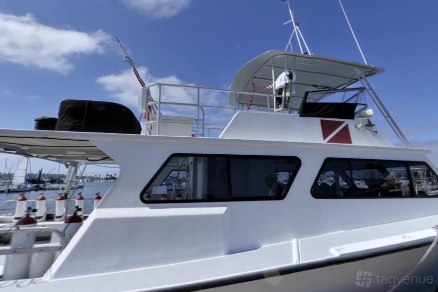 Our flagship vessel, the Humboldt, is a 2007 Newton 46' Dive Special, stretching 50 ft in length. Perfect for larger groups, it accommodates up to 24 guests. Features include an expansive back deck, a cozy second deck, and modern amenities such as a marine toilet, hot-water showers, and a Bluetooth stereo system. Ideal for snorkel trips, Mission Bay cruises, or ocean safaris.